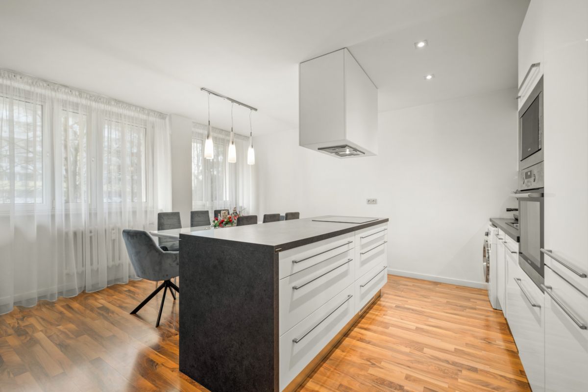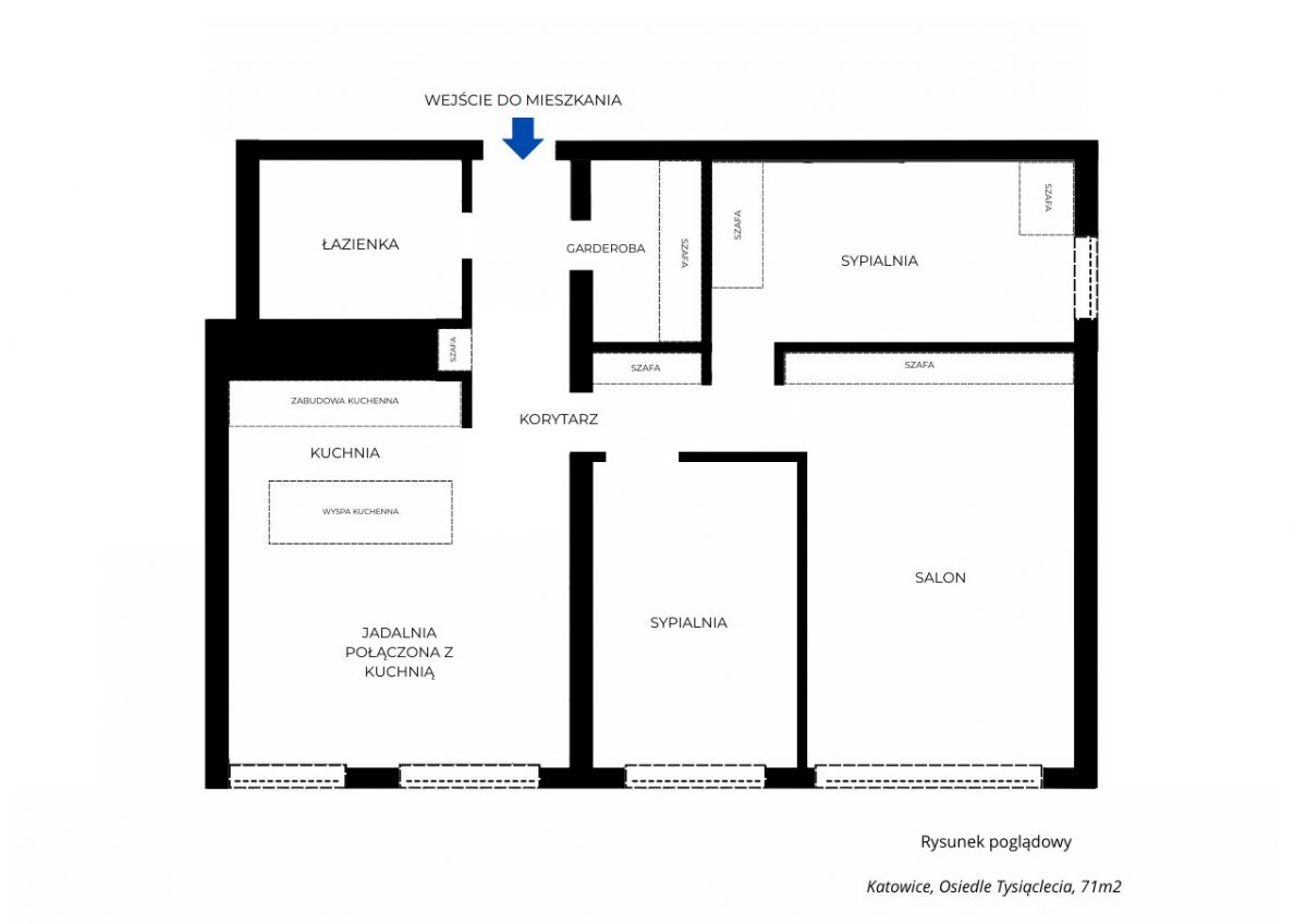 Do sprzedaży mieszkanie o powierzchni 71 m2 składające się pierwotnie z 4 pokoi, kuchni, łazienki z WC i przedpokoju. Aktualnie jeden z pokoi został połączony z kuchnią, dzięki czemu mamy dostęp do funkcjonalnej kuchni z wyspą i wygodnej jadalni. W mieszkaniu również umeblowana komórka lokatorska pełniąca rolę garderoby.