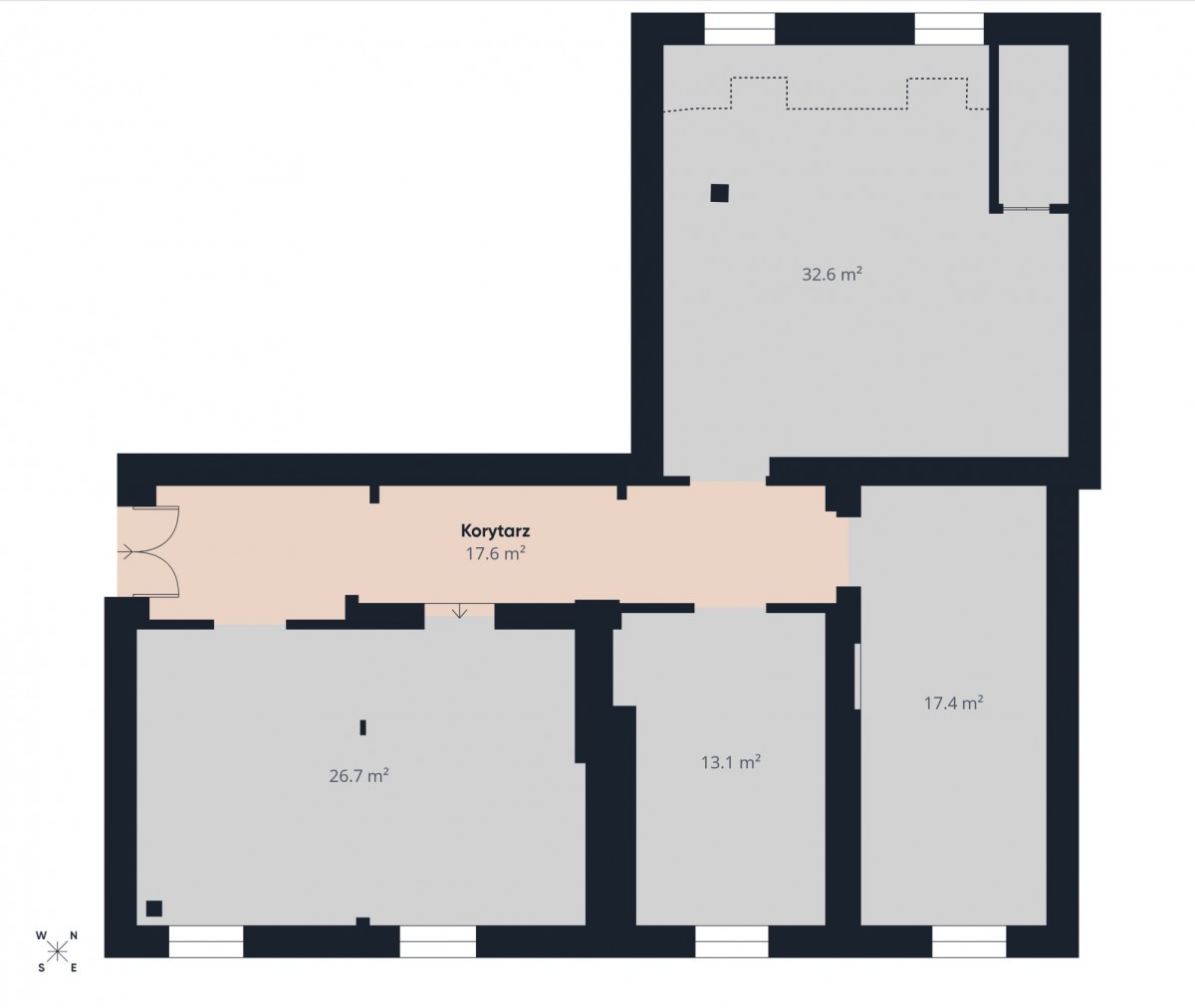 Mieszkanie do remontu, co oznacza, że urządzisz je dokładnie pod swój plan - od jednego dużego apartamentu w stylu loft, po podział na kilka niezależnych lokali na wynajem lub odsprzedaż.