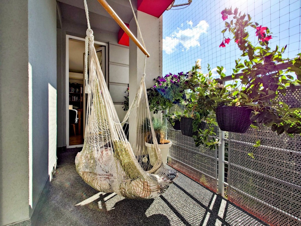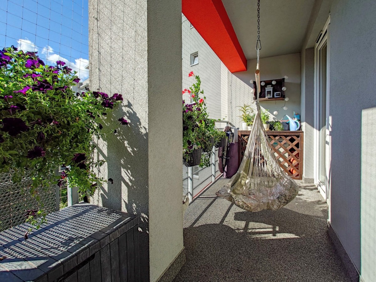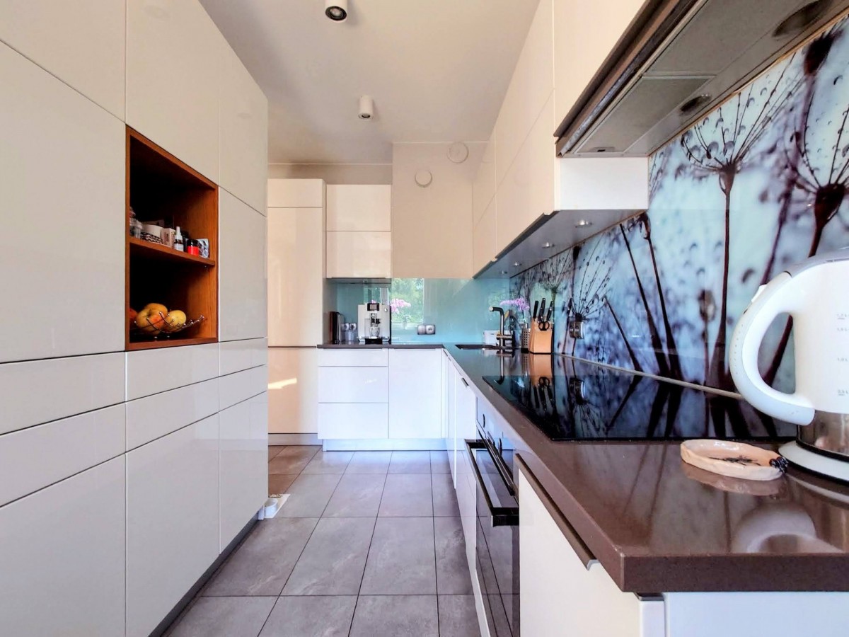 W pokojach parkiet w jodełkę, w aneksie kuchennym i łazience, płytki gresowe. Zabudowa kuchenna oraz szafy projektowane na wymiar. Wszystko w bardzo dobrym stanie, nie wymagającym napraw, czy poprawek. Loggia od południa z widokiem na zieleń i ogrodzony, prywatny plac zabaw.