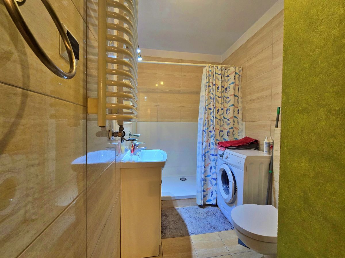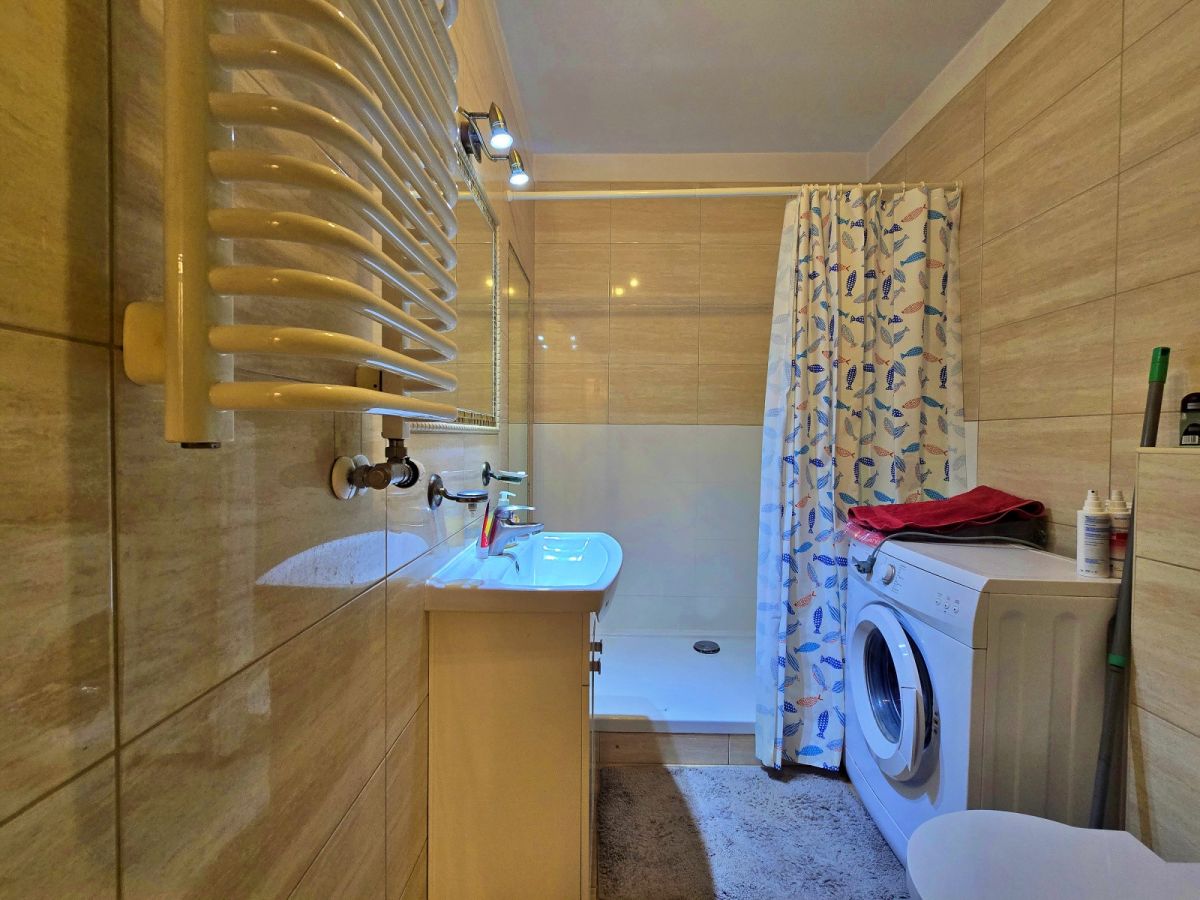 Nieruchomość jest umeblowana i wyposażona. W przedpokoju duża szafa, kuchnia wyposażona w sprzęt AGD. W łazience schowki, pralka.