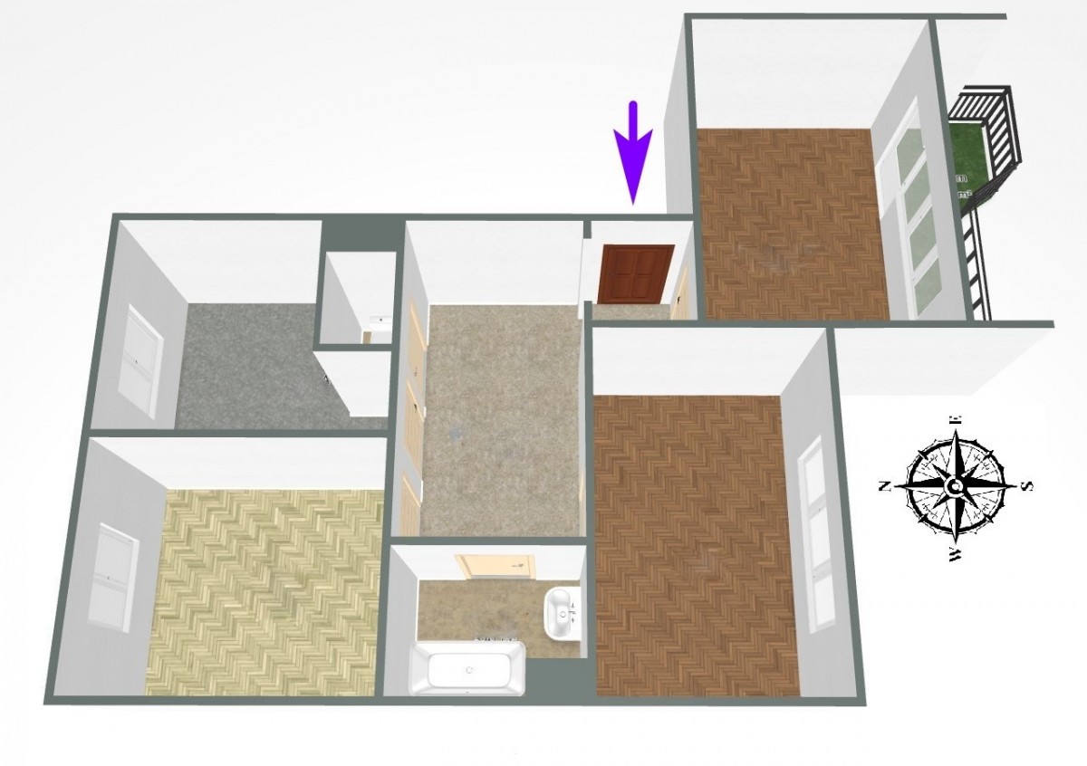 Funkcjonalny układ - trzy oddzielne pokoje i duża kuchnia.