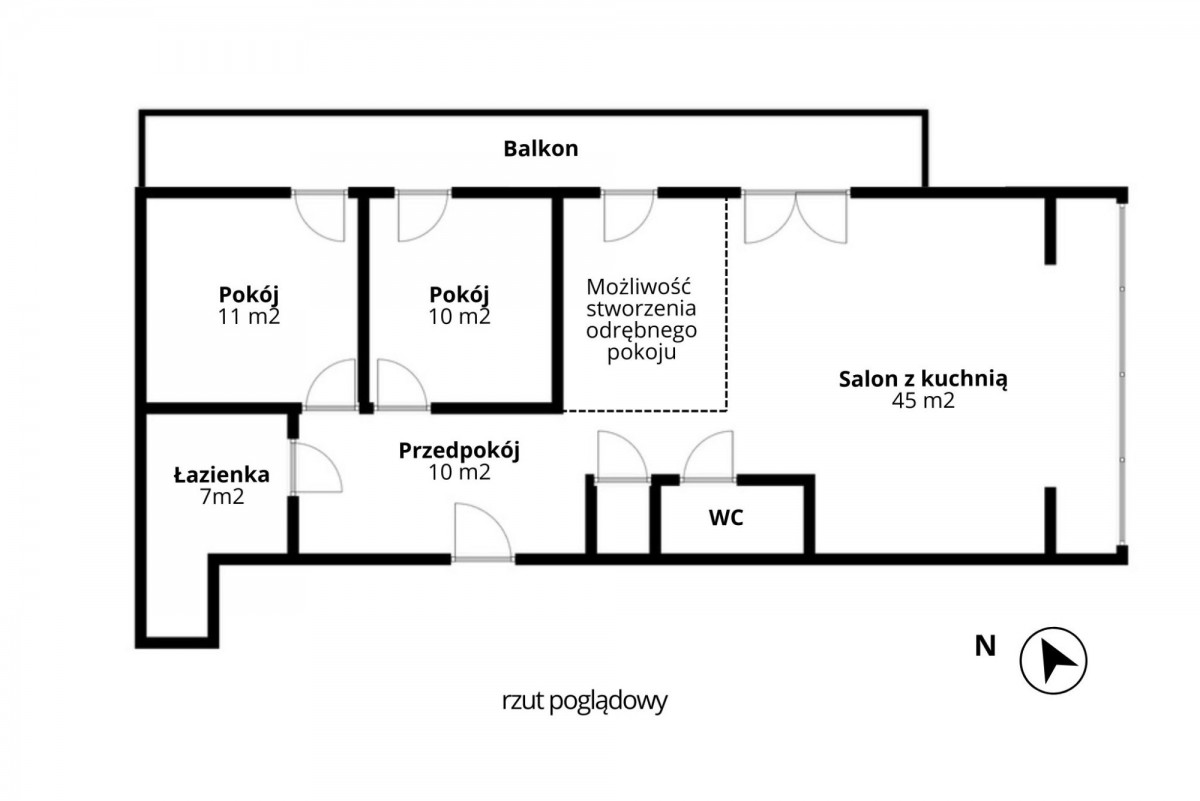 ▪ duży salon 40 m2 z możliwością stworzenia 3 sypialni (był na projekcie dewelopera)