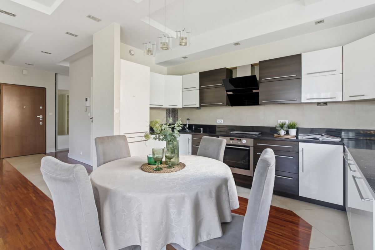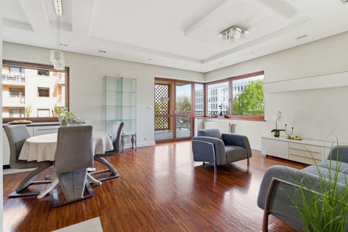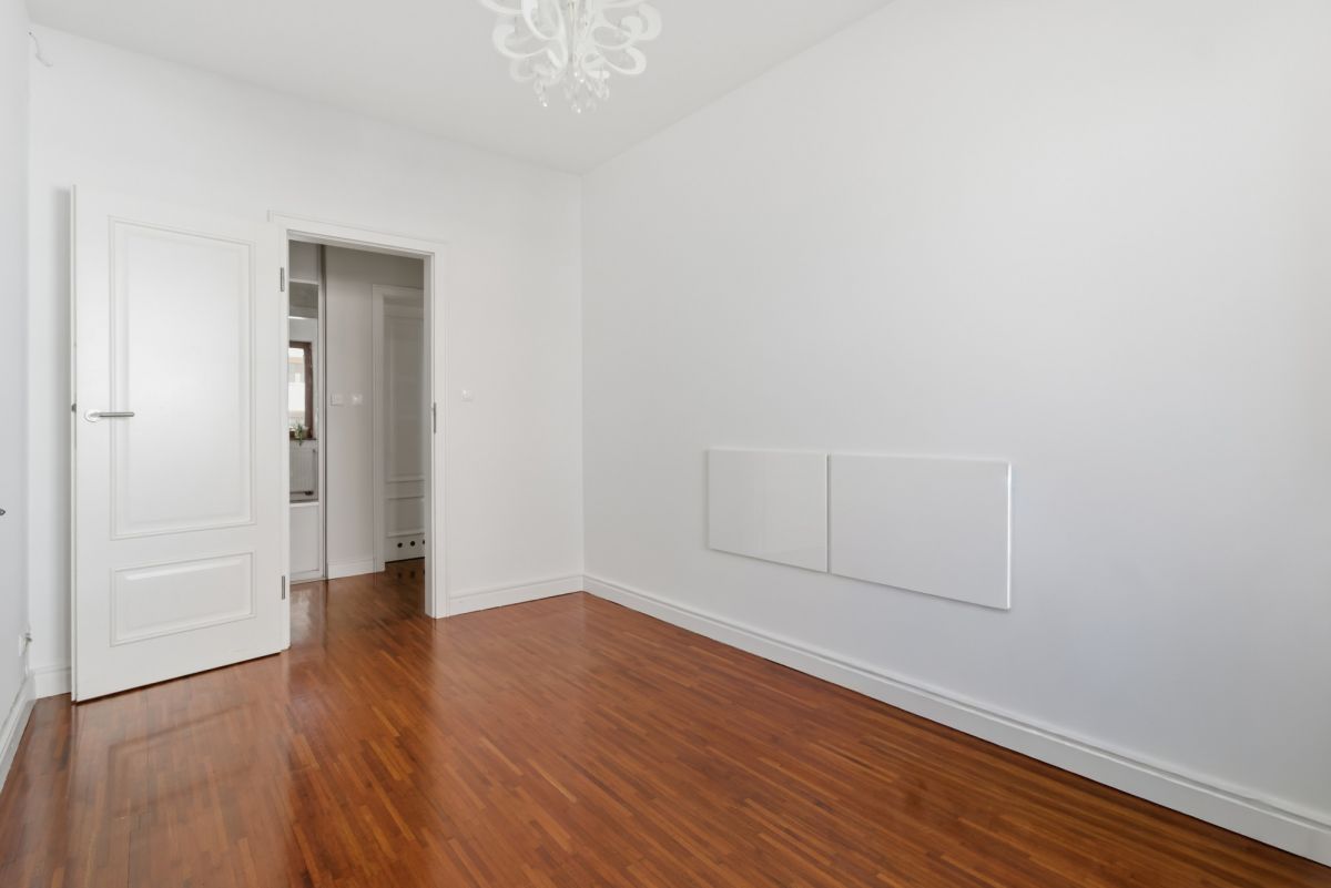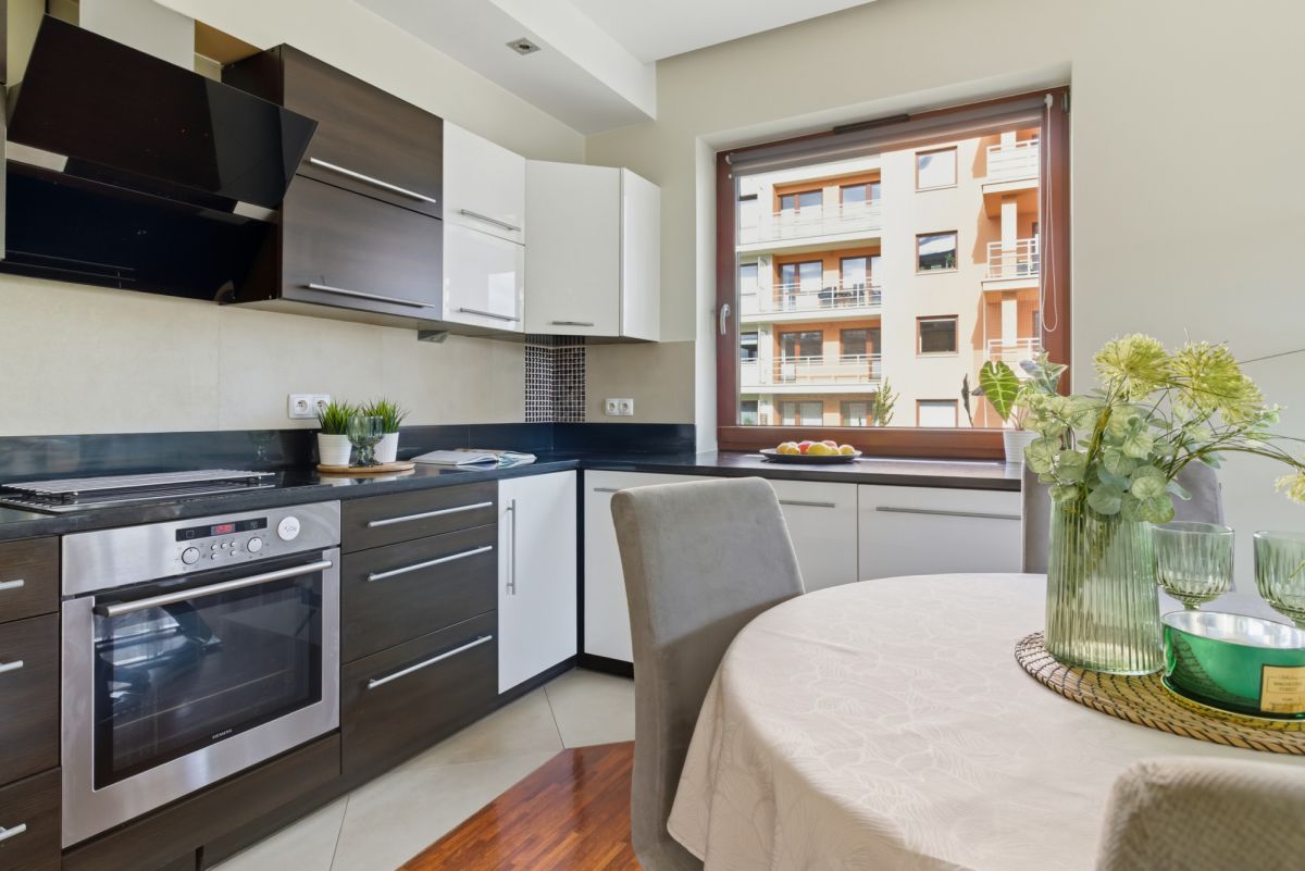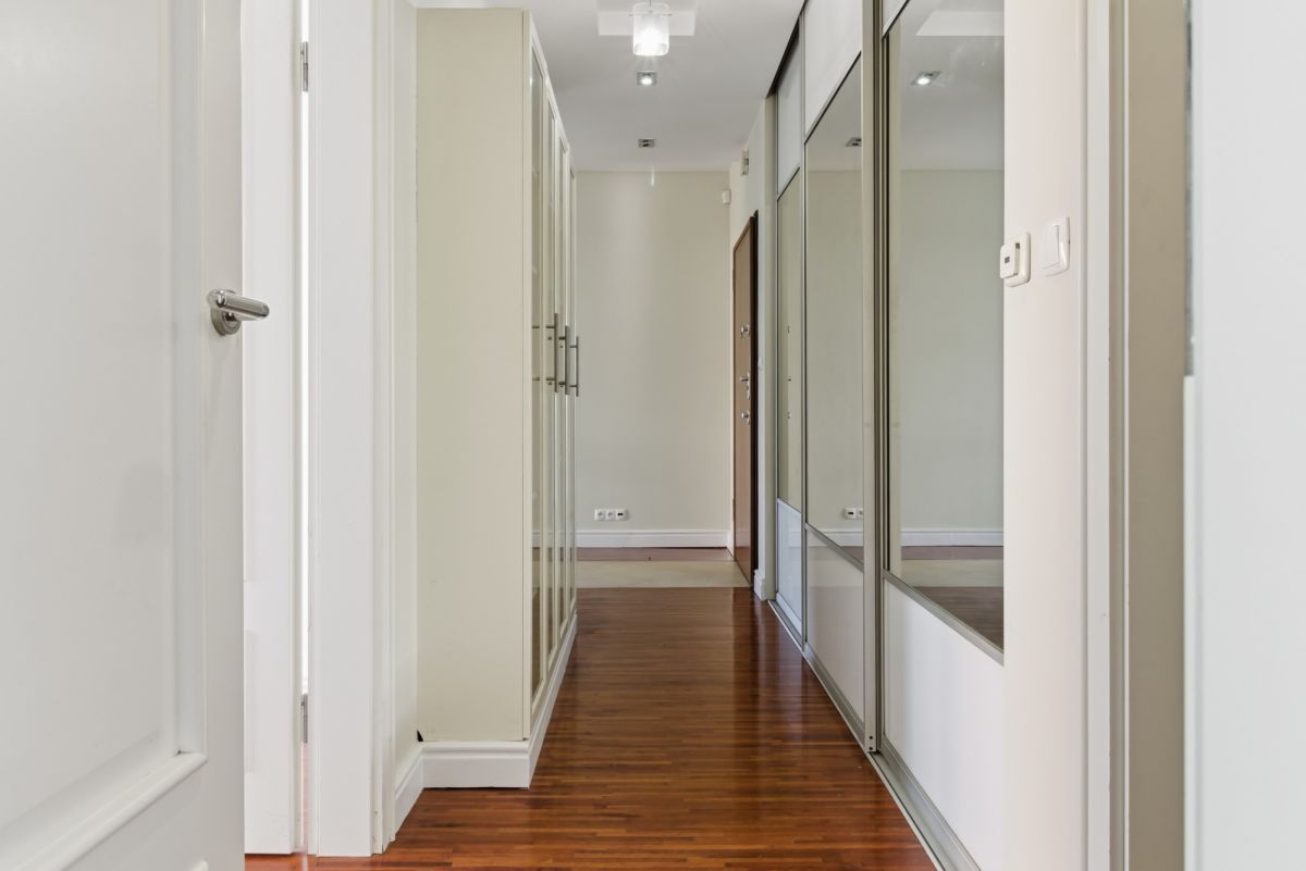 Na podłodze parkiet, drzwi drewniane, blat w kuchni granitowy, dwie łazienki. Bardzo jasne sypialnie z przylegającym balkonem