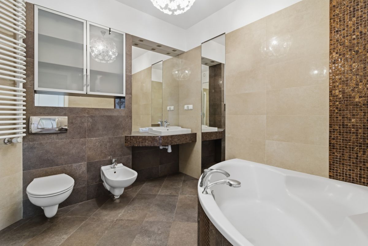 - duża łazienka z wanną i pomieszczeniem gospodarczym