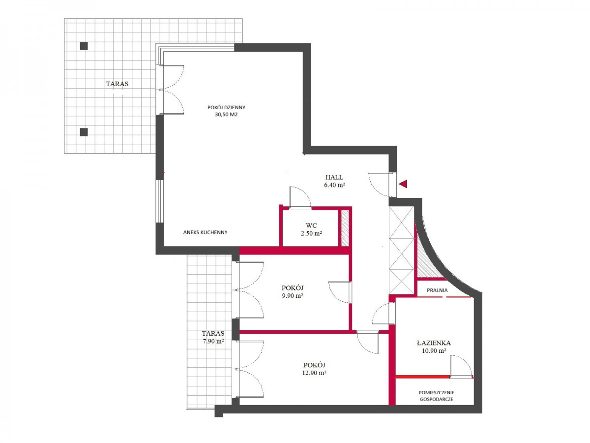 - Sypialni z wyjściem na taras