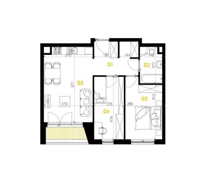 - salon z aneksem kuchennym i wyjściem na loggię - ok. 20,75 m2