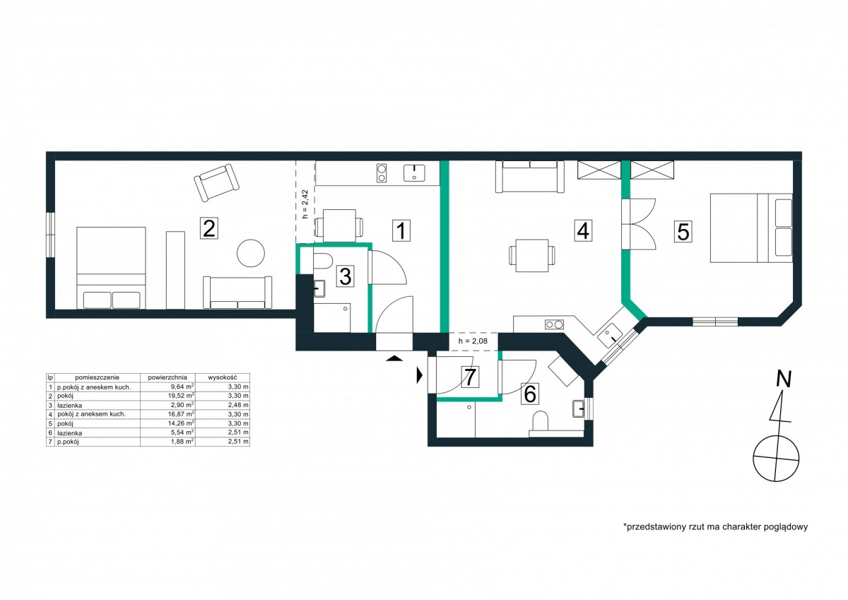 Podane informacje oraz załączony rzut lokalu mają charakter poglądowy.