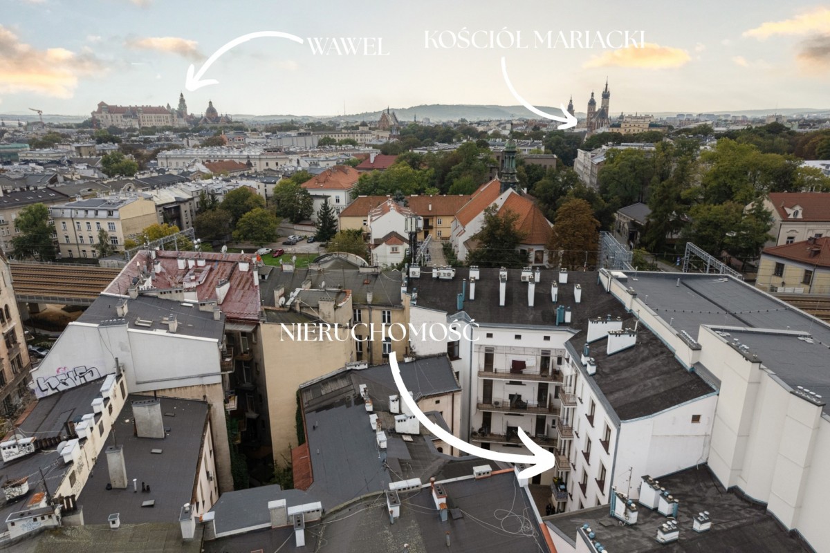 Nieruchomość znajduje się w ścisłym centrum w zabytkowej odrestaurowanej i dobrze utrzymanej kamienicy. Atutem lokalizacji jest bliskość najważniejszych punktów w Krakowie, a także mnogość punktów usługowych, handlowych, medycznych i wielu innych. Pomimo tego, że nieruchomość znajduje się w ścisłym centrum dzięki położeniu w oficynie w mieszkaniu panuje cisza i spokój a okna wychodzą na dziedziniec.