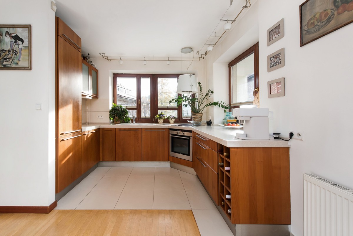 • Salon z kuchnią - ponad 37,5 m² jasnej i otwartej przestrzeni, z dużymi oknami i klimatyzacją. Aneks kuchenny wyposażony w wysokiej klasy sprzęt AGD (Liebherr, Siemens), okap Elica oraz blat z konglomeratu.