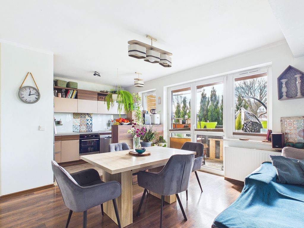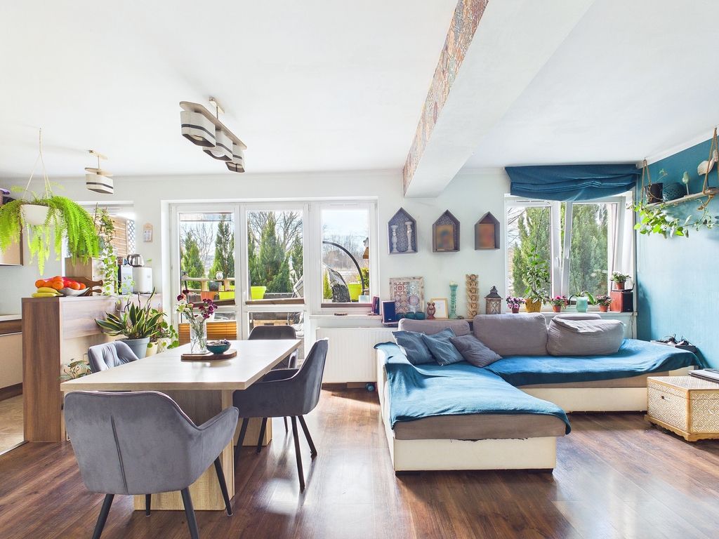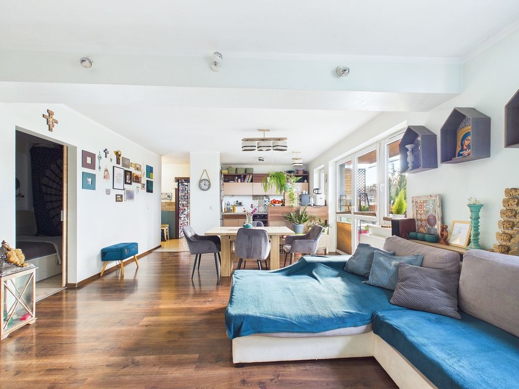 - Dobry rozkład mieszkania: Otwarta przestrzeń z salonu poprawia funkcjonalność.
