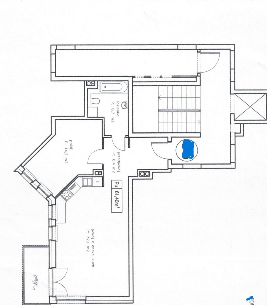 - wymiary pomieszczeń: salon z aneksem kuchennym: 32, 1 m2 ( + balkon 5 m2), sypialnia 14 m2, łazienka ok 7 m2, przedpokój 8,4 m2
