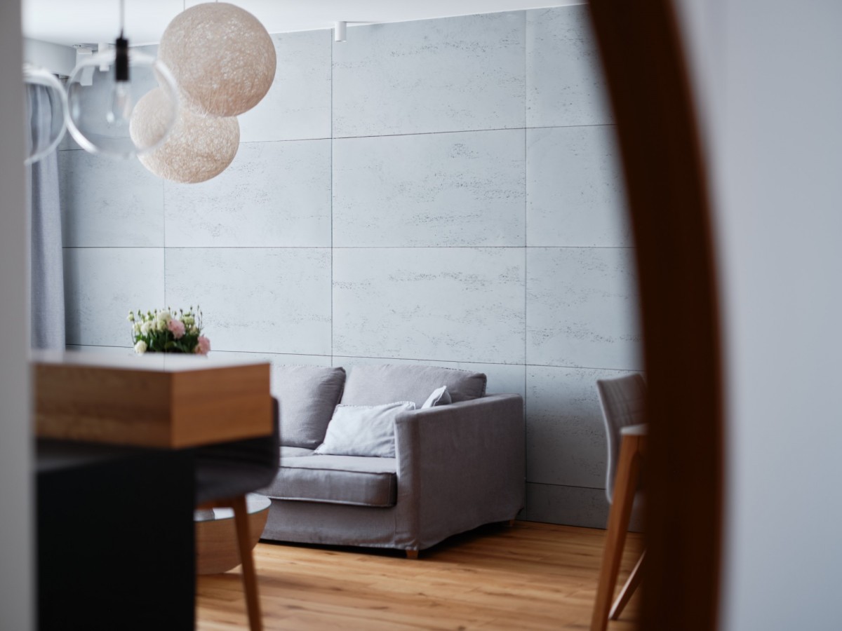 - Wysokiej jakości materiały - kamień, drewno, beton architektoniczny