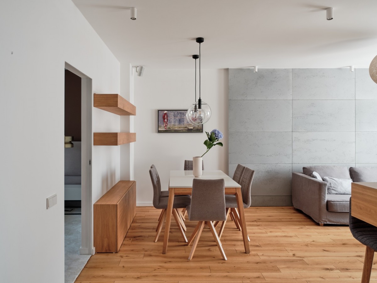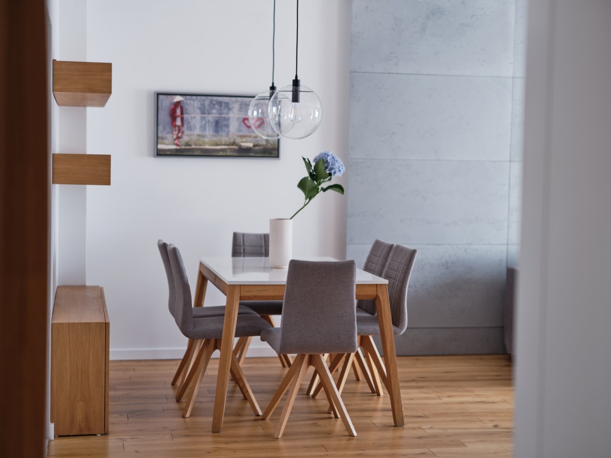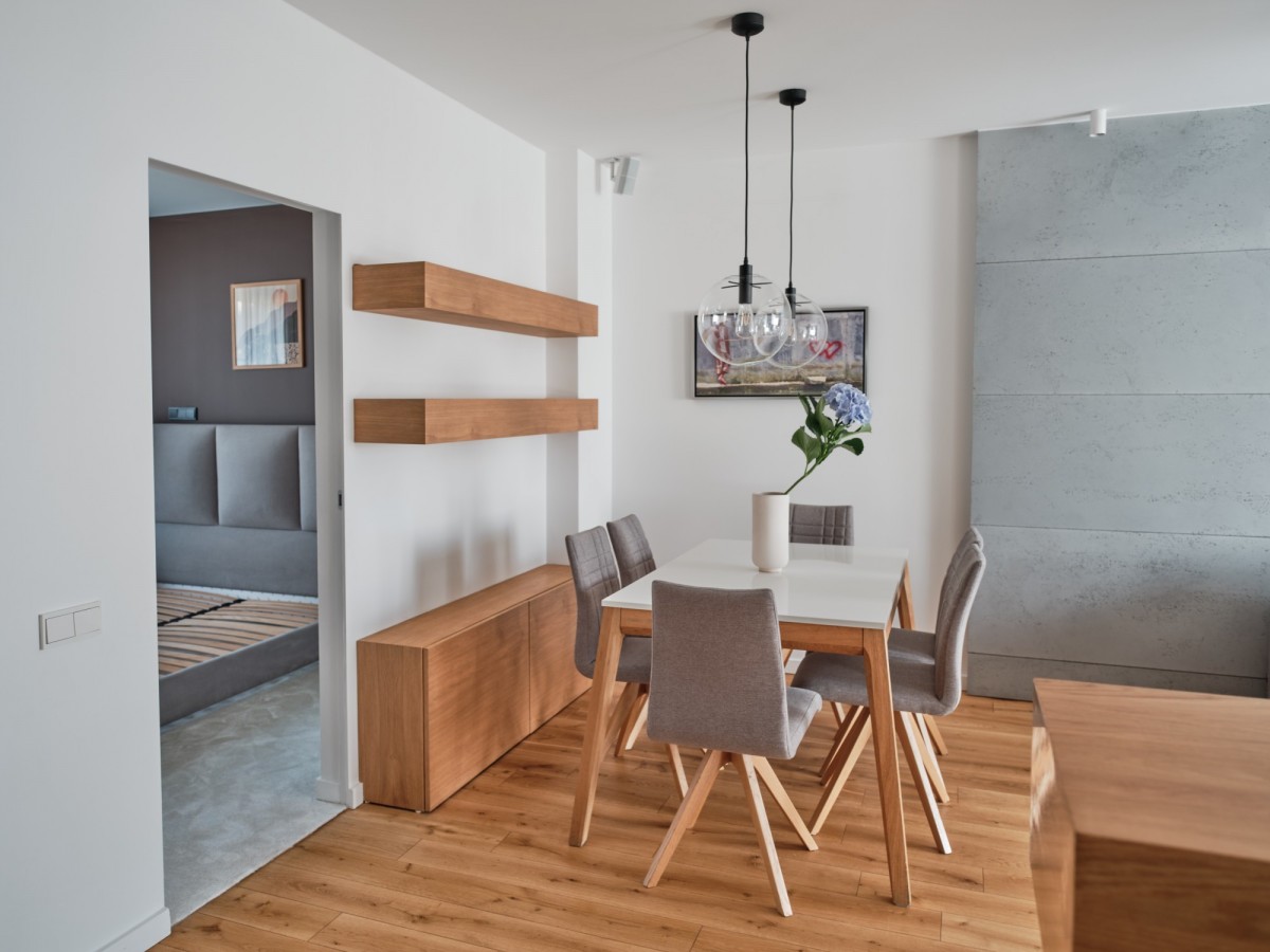 Z przyjemnością prezentujemy piękne, stylowo urządzone mieszkanie o powierzchni 80,6 m², zaprojektowane z myślą o komforcie, funkcjonalności i ponadczasowym designie. Wnętrza utrzymane są w stonowanej, eleganckiej kolorystyce - dominują szarości, beże i naturalne materiały, które tworzą harmonijną przestrzeń sprzyjającą codziennemu życiu i relaksowi.