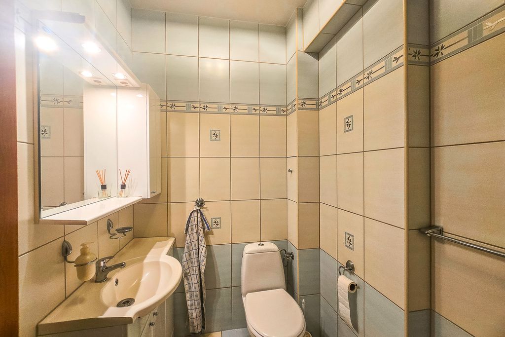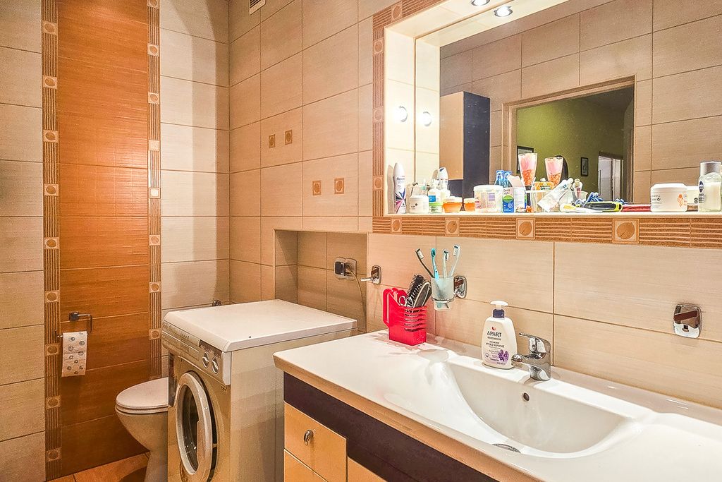 Dwie łazienki w mieszkaniu to ogromny komfort codziennego użytkowania. Jedna na parterze z prysznicem oraz pralką, wc i umywalką, druga na piętrze z dużą wanną z hydromasażem, do tego różnego rodzaju oświetlenie przy którym można się zrelaksować, kolejne wc i umywalka oraz grzejnik drabinkowy. Zapewniają wygodę dla całej rodziny.