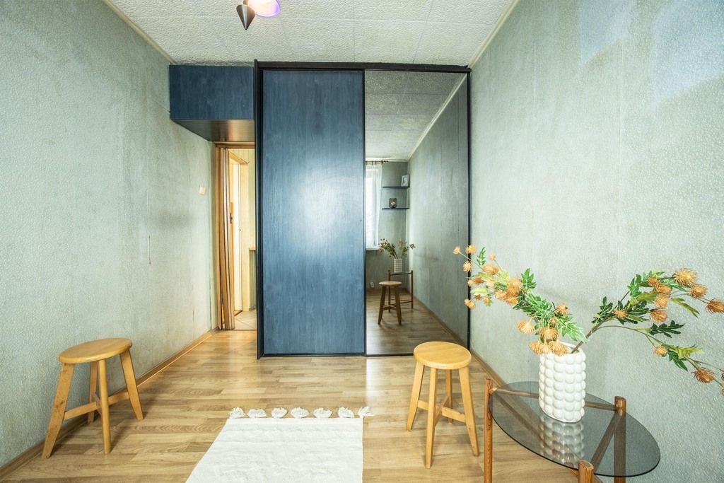 Mieszkanie składa się z 3 pokoi, a jego układ został ulepszony przez właścicieli, dzięki czemu przestrzeń jest bardziej funkcjonalna i komfortowa.