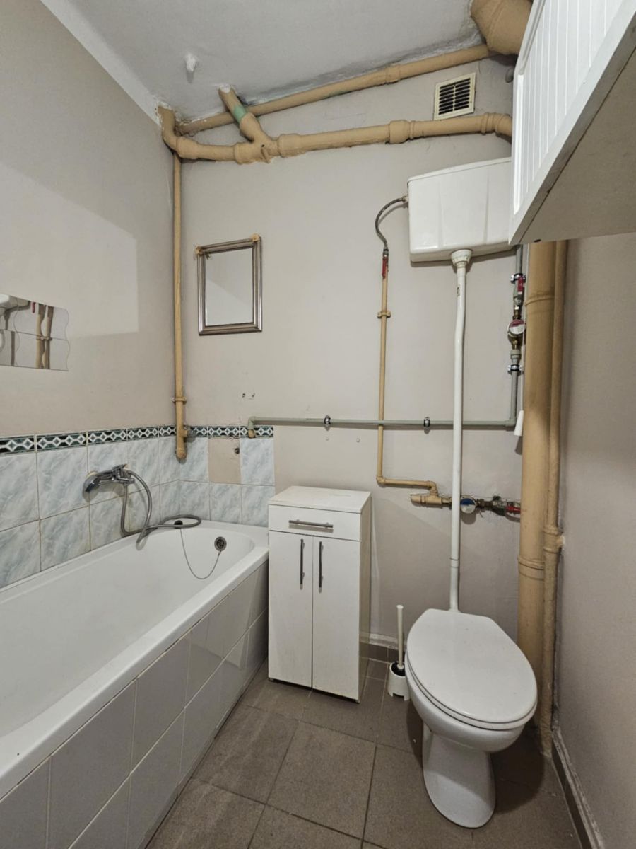 Nieruchomość jest w dobrym stanie. W pokoju na ścianach znajdziemy gładzie, a na podłodze oryginalny, zadbany parkiet. Kuchnia oraz przedpokój również nie wymagają dużych nakładów finansowych, natomiast łazienka wymaga remontu.