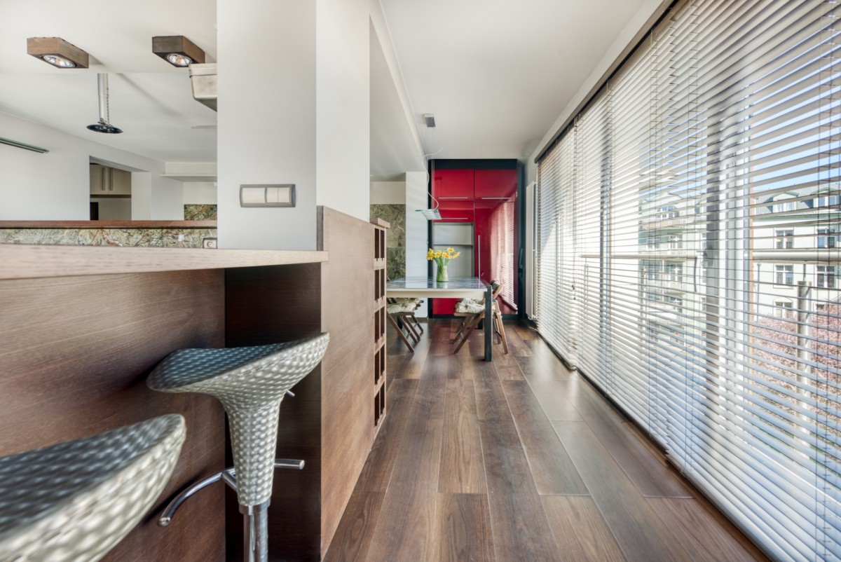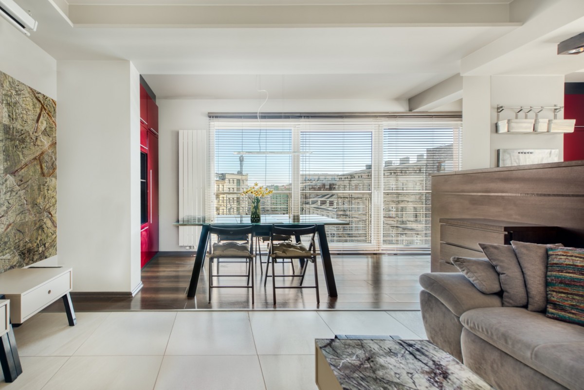 Mieszkanie z panoramicznymi oknami i widokiem na kameralny skwer.