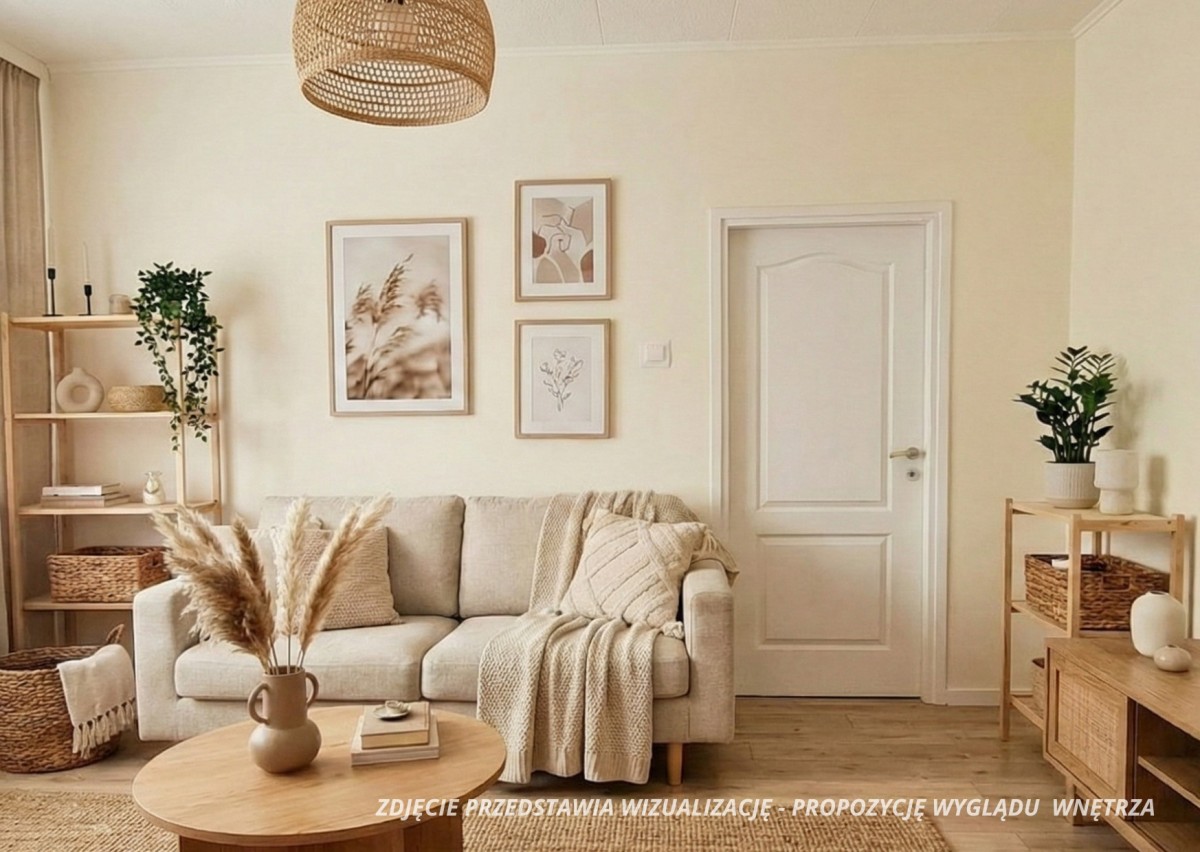 * przestronnego salonu (18m² ) z meblami widocznymi na zdjęciu