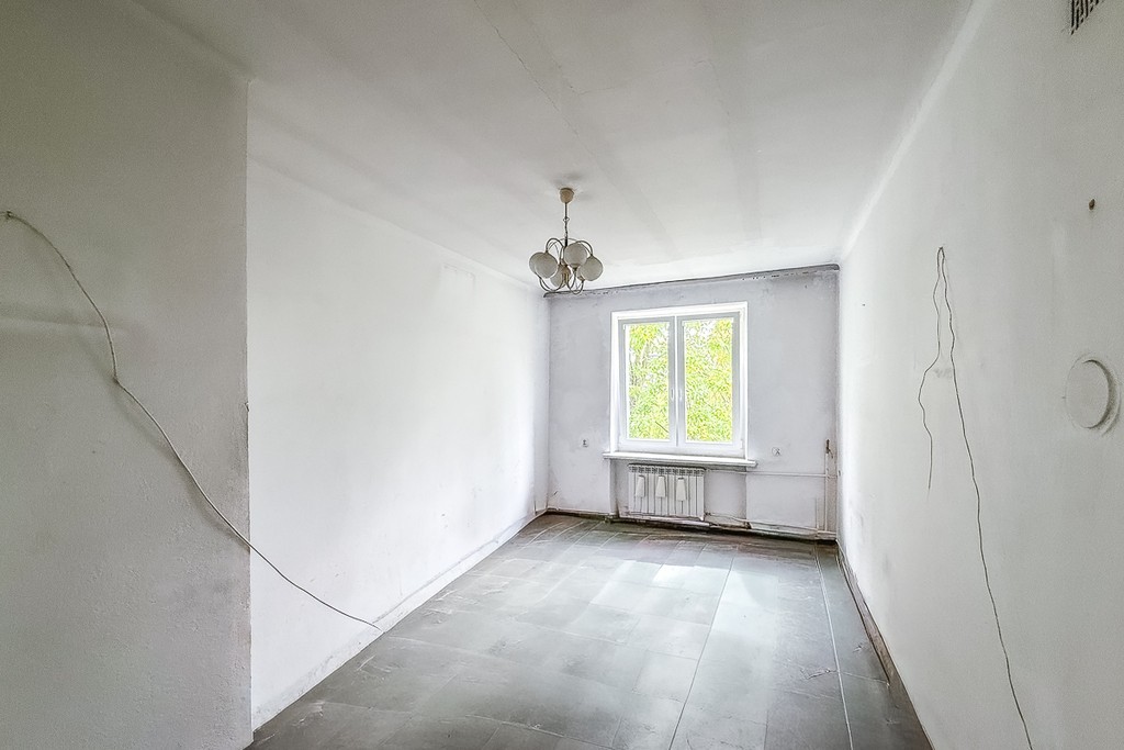 To rozkładowe ustawne mieszkanie wymaga remontu, co daje przyszłym właścicielom możliwość aranżacji według własnych upodobań. Duży pokój o powierzchni 17m² to przestrzeń, w której zmieszczą się zarówno aneks kuchenny jak i duża kanapa i stół.