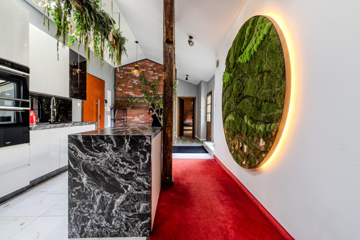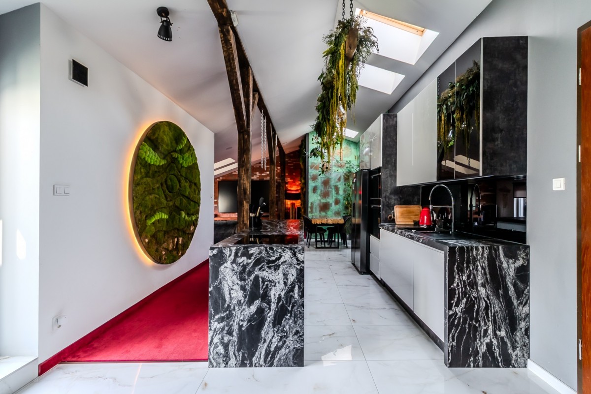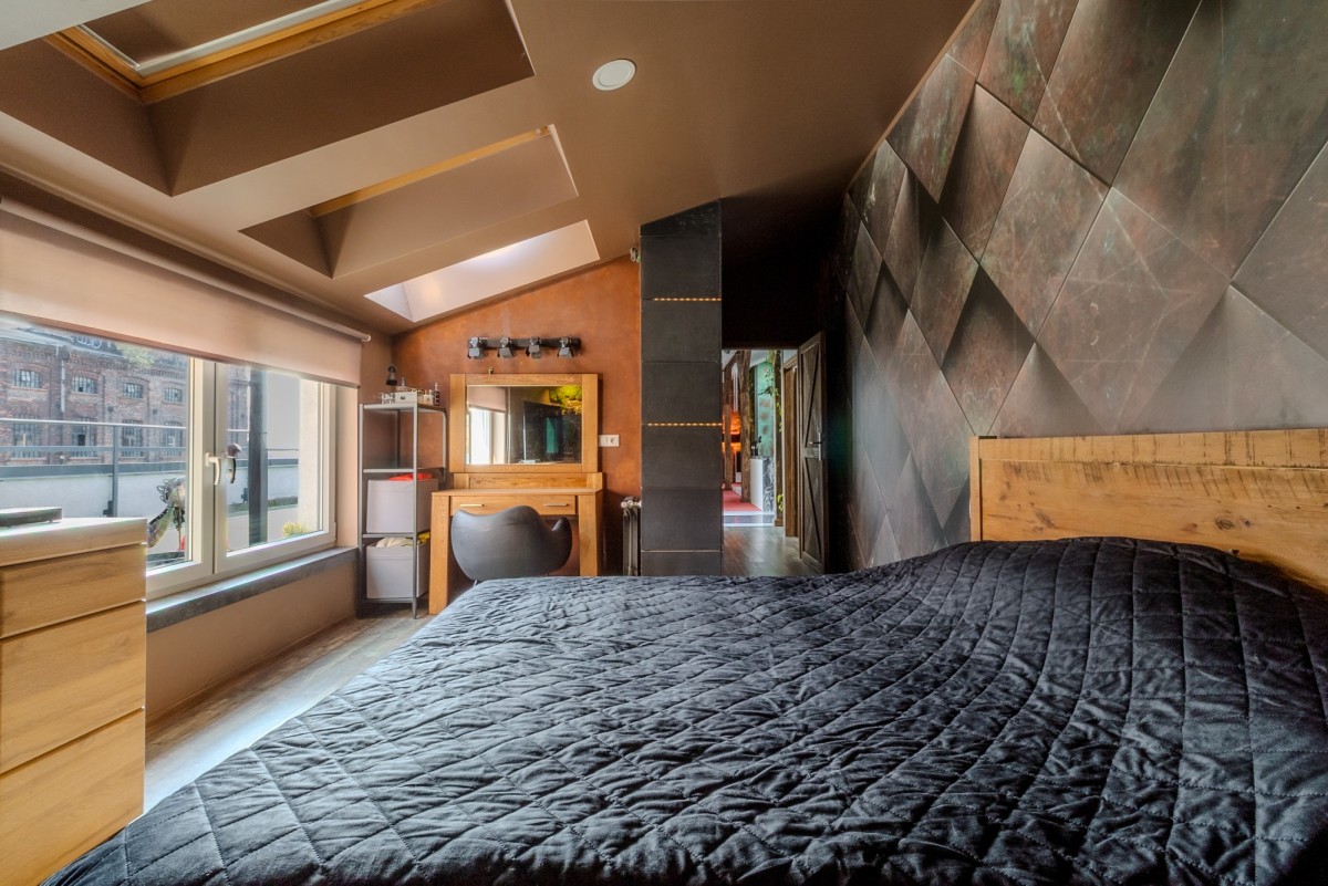 Wnętrze zaprojektowano z myślą o równowadze między surowością postindustrialnej architektury a elegancją współczesnego designu.