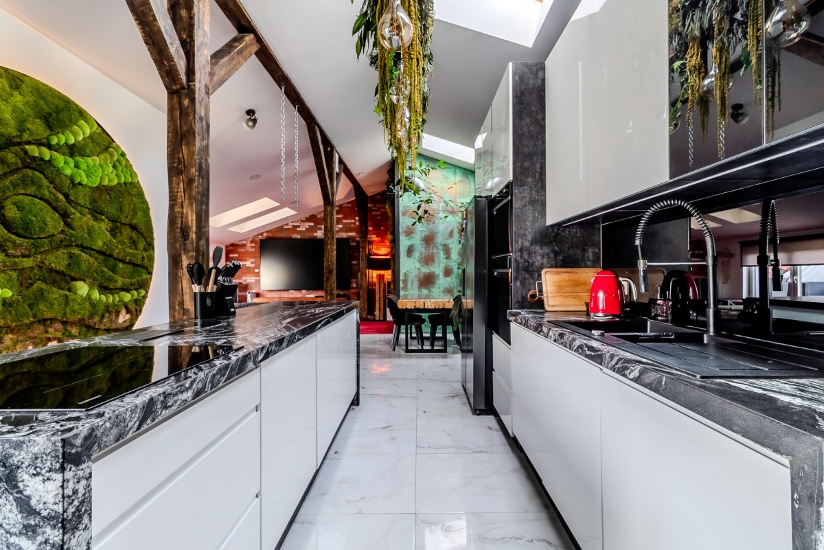Na sprzedaż wyjątkowy loft o powierzchni 90 m², położony na ostatnim piętrze z tarasem 70 m² rozciągającym się wzdłuż całego apartamentu.