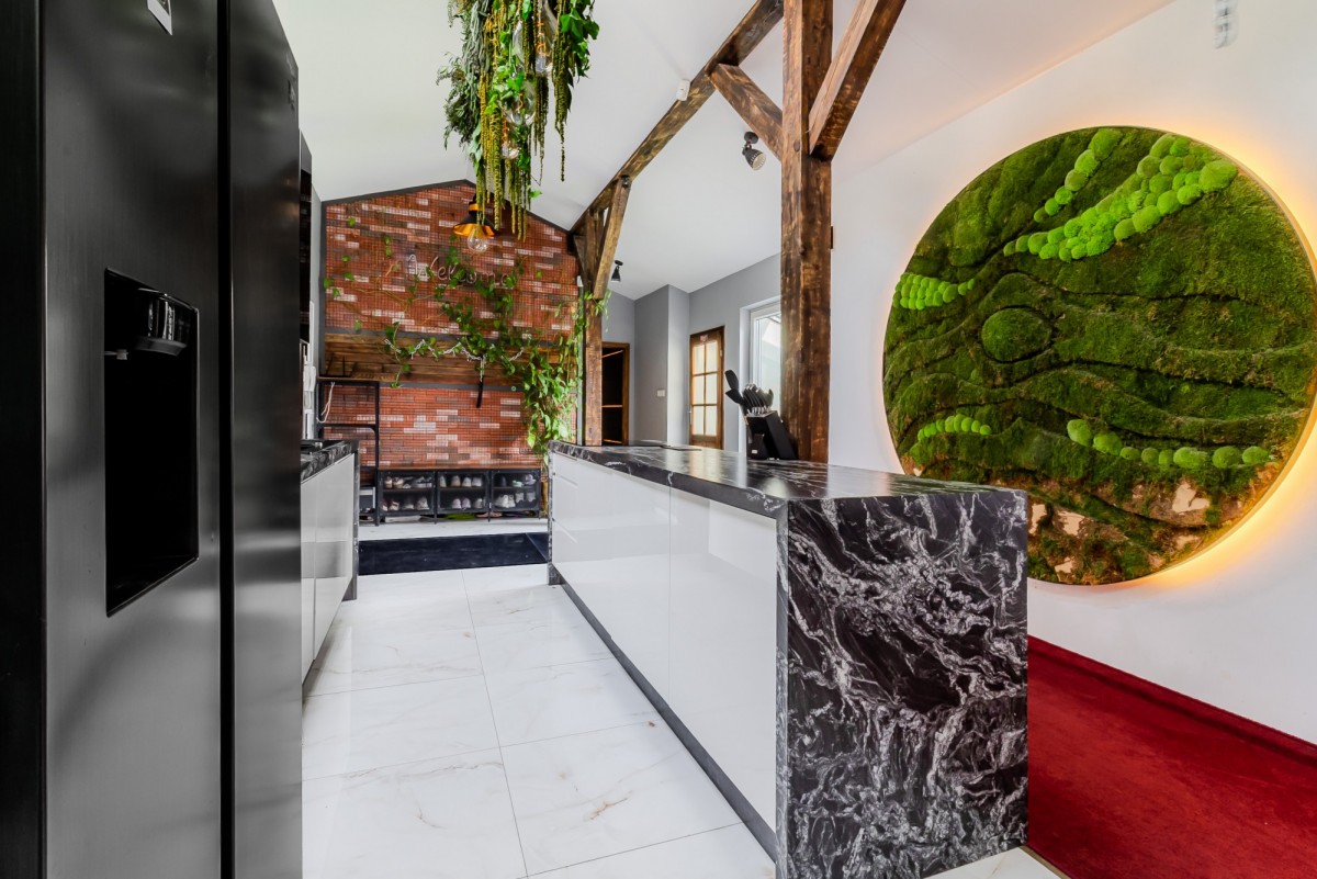 imponującą ścianę z naturalnego mchu z podświetleniem LED.