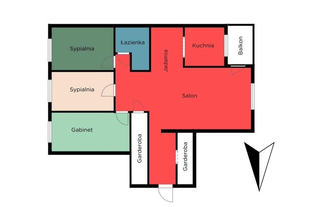 Apartament składa się z 4 pokoi, w tym przestronnego salonu połączonego z jadalnią oraz otwartej kuchni, dwóch głębokich garderob i łazienki połączonej z wc.
