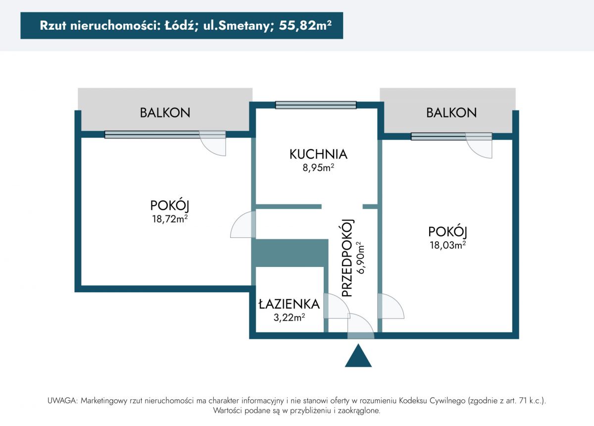 Mieszkanie o powierzchni 55,82 m² przy ul. Smetany 14 na łódzkim Widzewie to propozycja dla osób, które szukają lokalu z dużym potencjałem aranżacyjnym i inwestycyjnym. Położone na wysokim parterze, w zadbanym wieżowcu po termomodernizacji, oferuje wygodę codziennego funkcjonowania, świetną komunikację i jednocześnie ciszę, której trudno szukać w tej części miasta. To idealna przestrzeń zarówno dla pary, rodziny, jak i inwestora planującego wynajem.