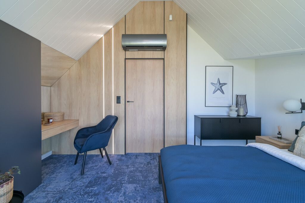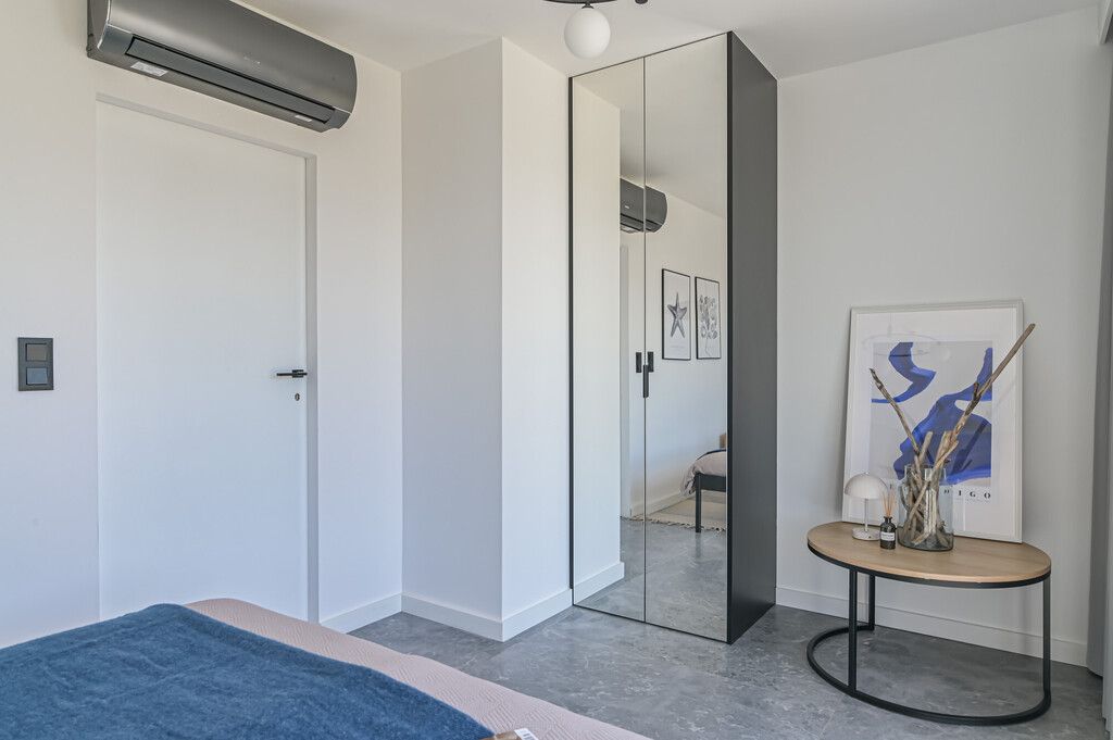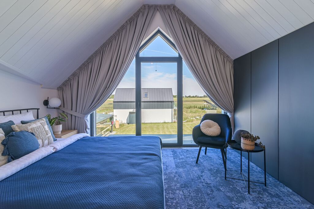 - Komfort: klimatyzacja w salonie i sypialniach, automatyczne karnisze, moskitiery