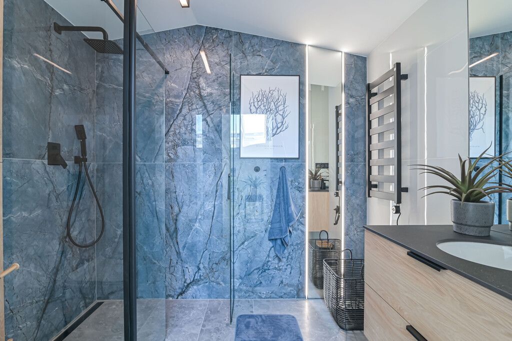 - Łazienki: prysznice walk-in, ogrzewanie podłogowe, armatura premium