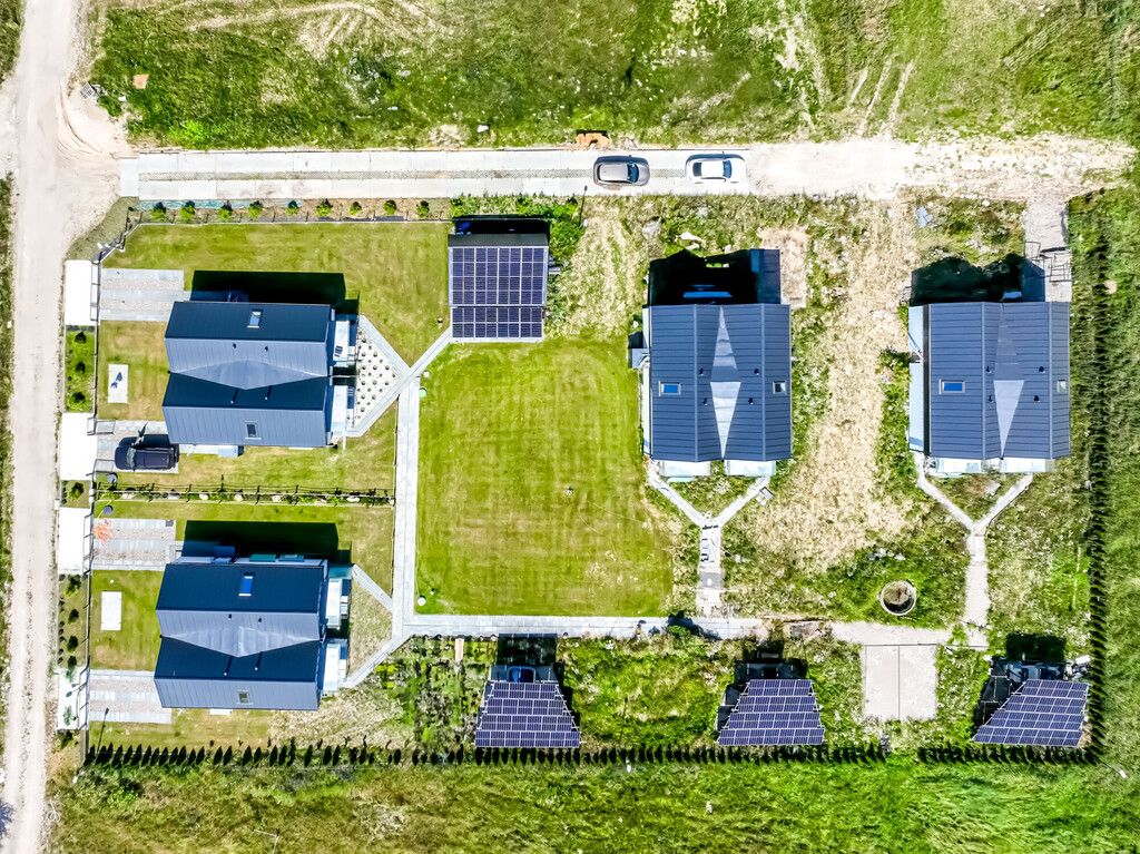 - Energooszczędne rozwiązania: pompa ciepła, klimatyzacja, fotowoltaika (ok. 10 kW na dom)