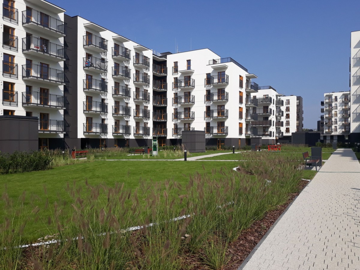 Apartamenty Bakalarska, mieszkanie z ogródkiem, Radius, mieszkanie na parterze, inwestycja pod wynajem, home office, biuro na sprzedaż, Warszawa Włochy, 2 pokoje, blisko Biedronka, Łopuszańska, CH Modo.
