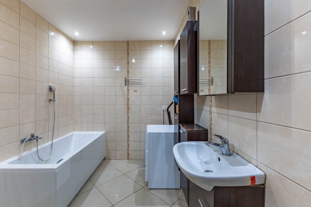 The apartment is well-equipped. The property is spacious, quiet, and functional. The floors are parquet and stoneware. The apartment has municipal gas heating. The windows are PVC. The price includes built-in furniture.