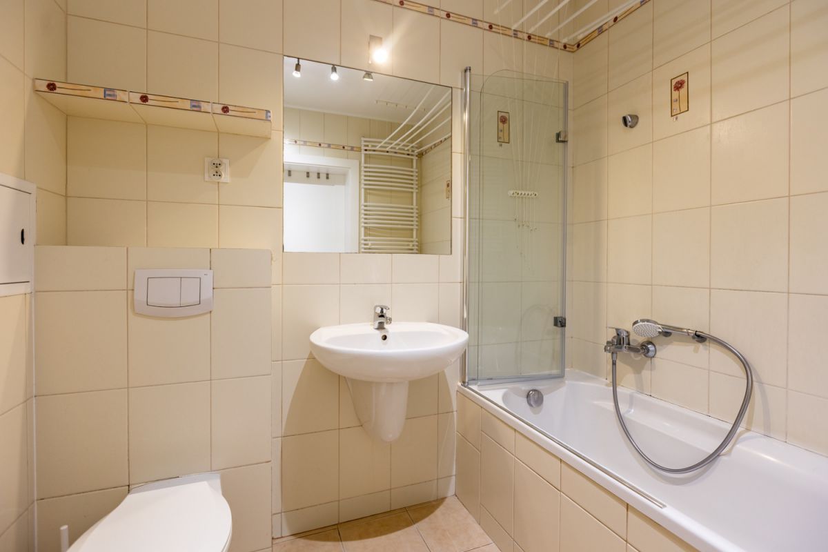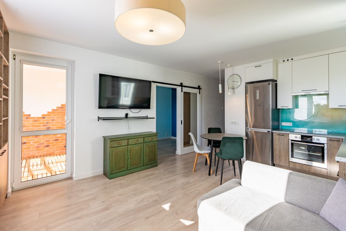 Funkcjonalny lokal o powierzchni 40,88 m² składa się z przestronnego salonu (23 m²) z wyjściem na balkon, sypialni (ok. 7 m²), łazienki (7 m²) oraz przedpokoju. Mieszkanie jest jasne i dobrze doświetlone, z oknami PCV o ekspozycji południowo-wschodniej oraz ładnym widokiem z balkonu.