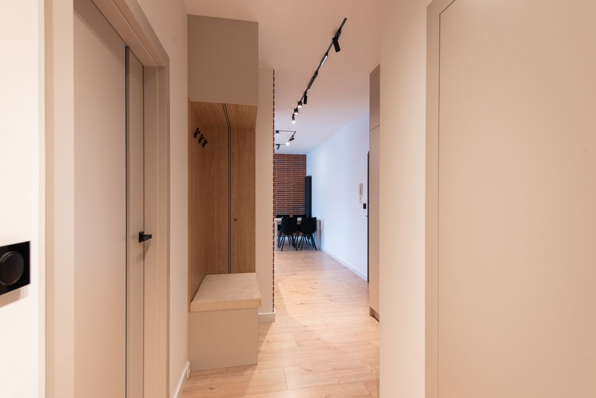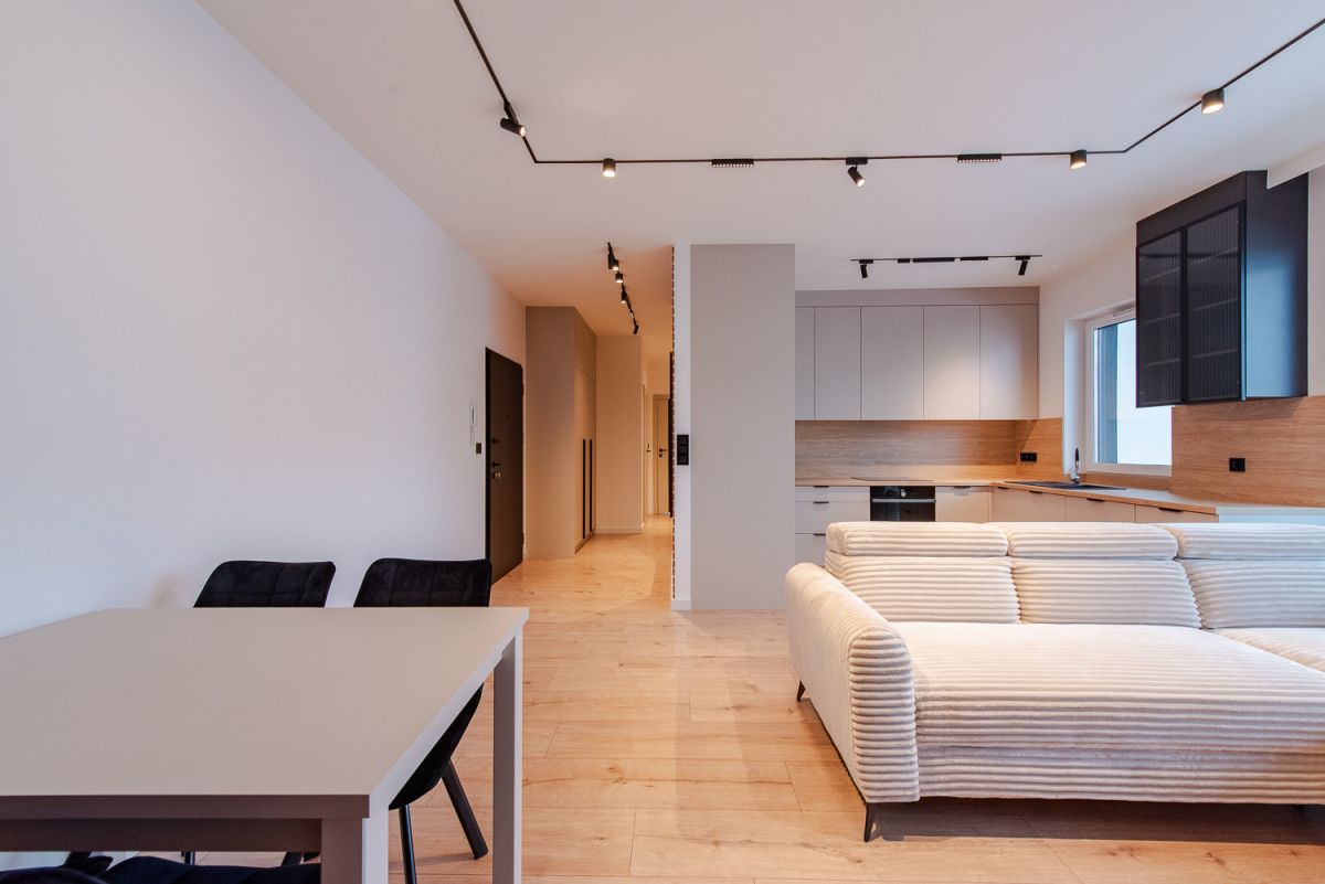 Mieszkanie usytuowane jest na 4. piętrze w budynku z windą. Wyróżnia się wysokim standardem wykończenia, nowoczesnym designem oraz funkcjonalnym układem pomieszczeń.