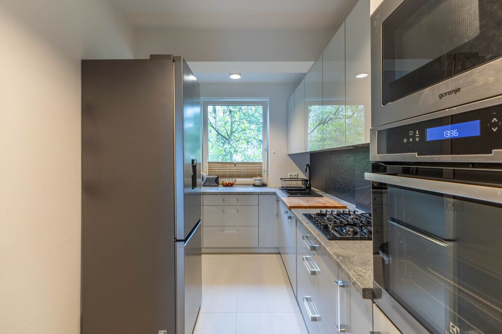 The apartment is furnished to a very high standard. The property is quiet, bright, and functional. The floors are laminate and stoneware. Gas heating. The windows are PVC. The last renovation took place two years ago. The price includes built-in furniture.