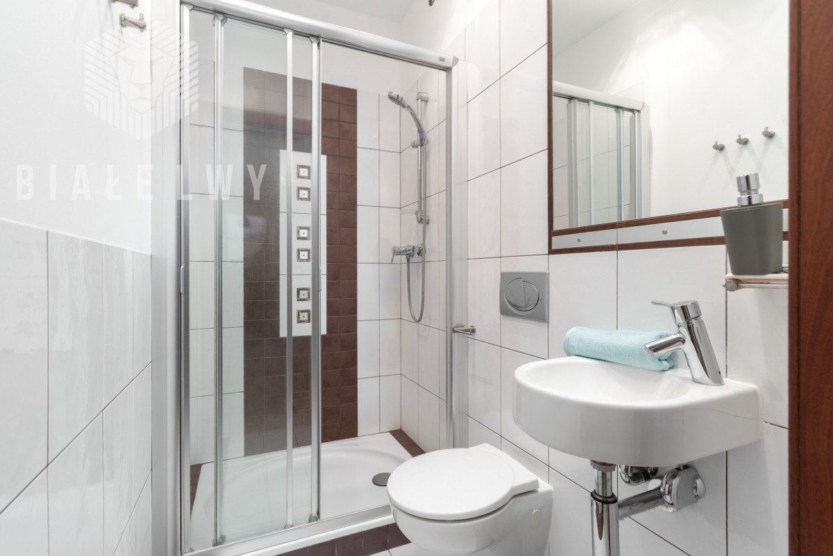 - z przedpokoju jest wejście do łazienki z prysznicem.
