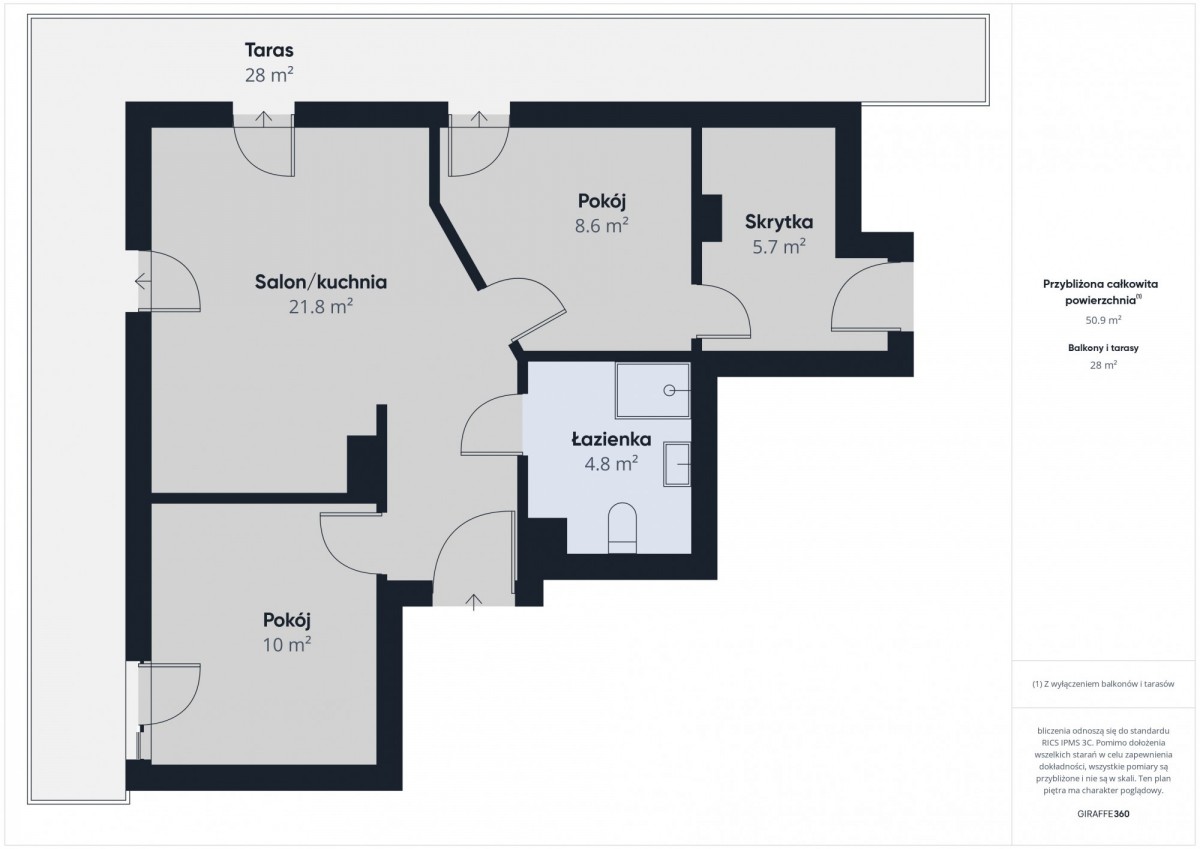Taras: ponad 30 m² - dostępny z każdego pokoju, naokoło mieszkania, idealny na letnie wieczory i spotkania z przyjaciółmi