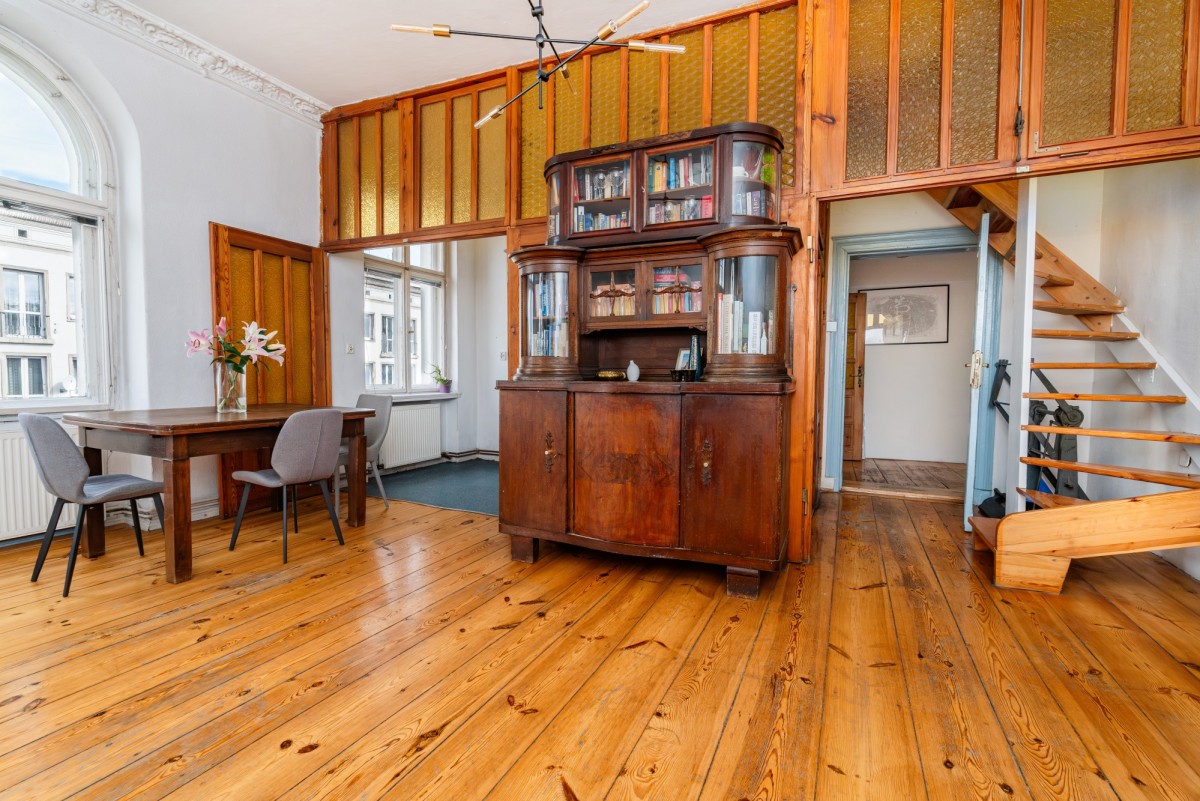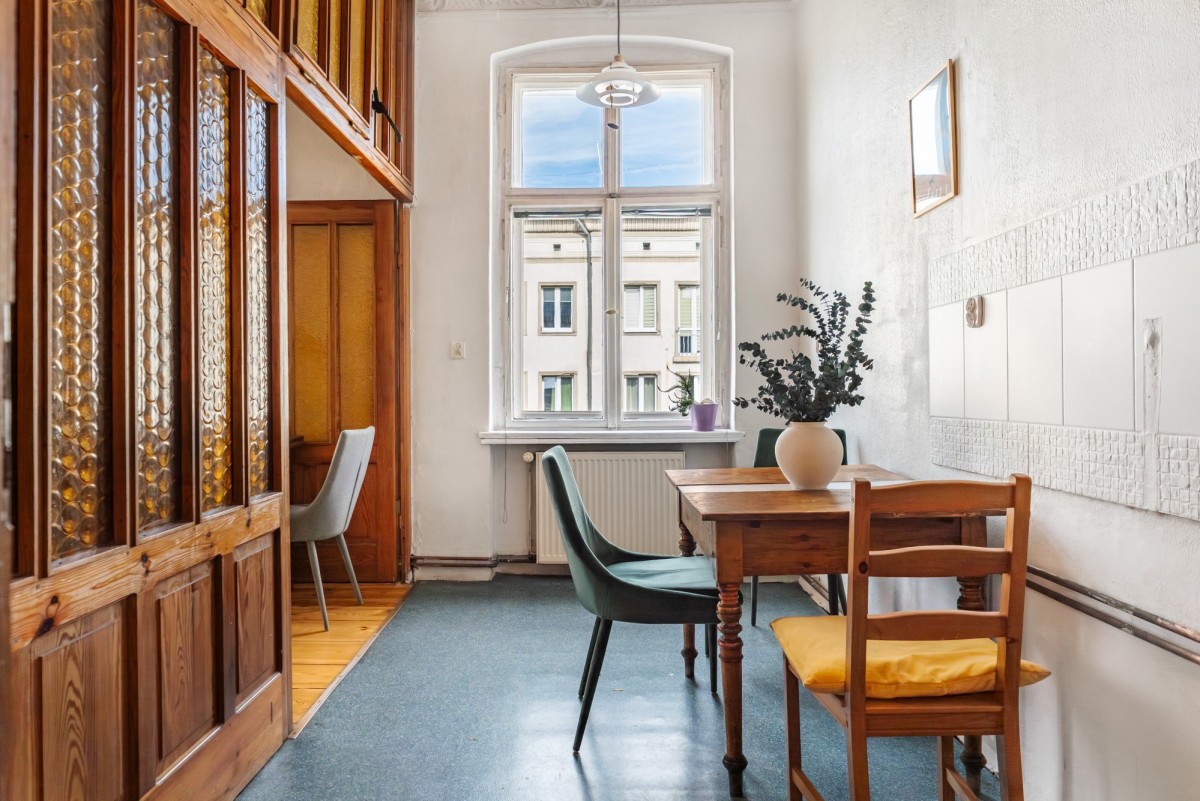 Zachwyca przestrzenią, światłem oraz zachowanymi oryginalnymi elementami wystroju. Idealne zarówno do zamieszkania, jak i na elegancką pracownię, kancelarię lub biuro
