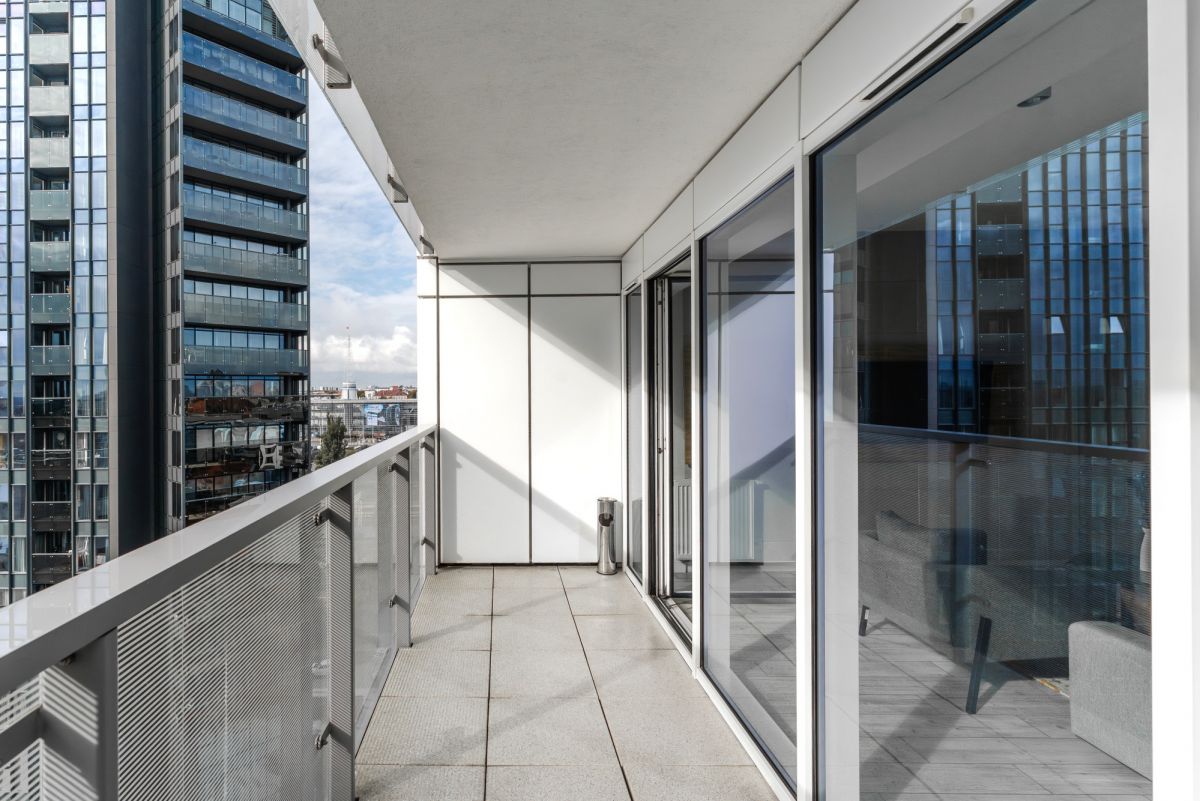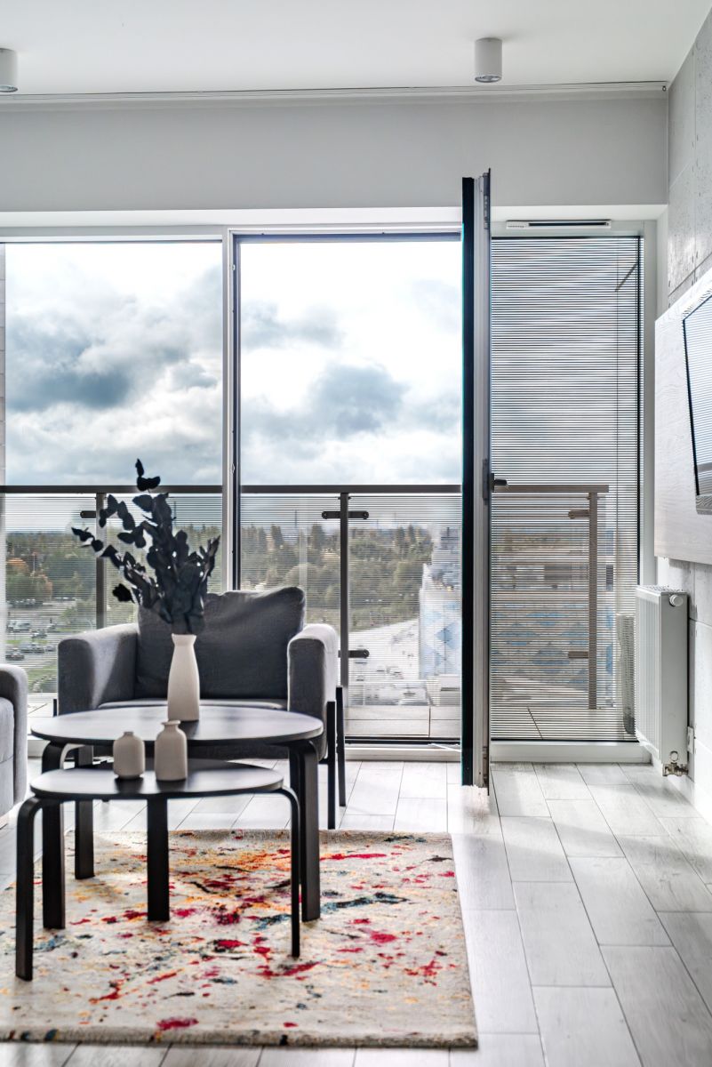 Wnętrze zostało zaprojektowane z dbałością o każdy detal - elegancka strefa dzienna z panoramicznymi oknami tworzy przestrzeń pełną światła i energii. Z balkonu rozciąga się widok na tętniące życiem centrum miasta.