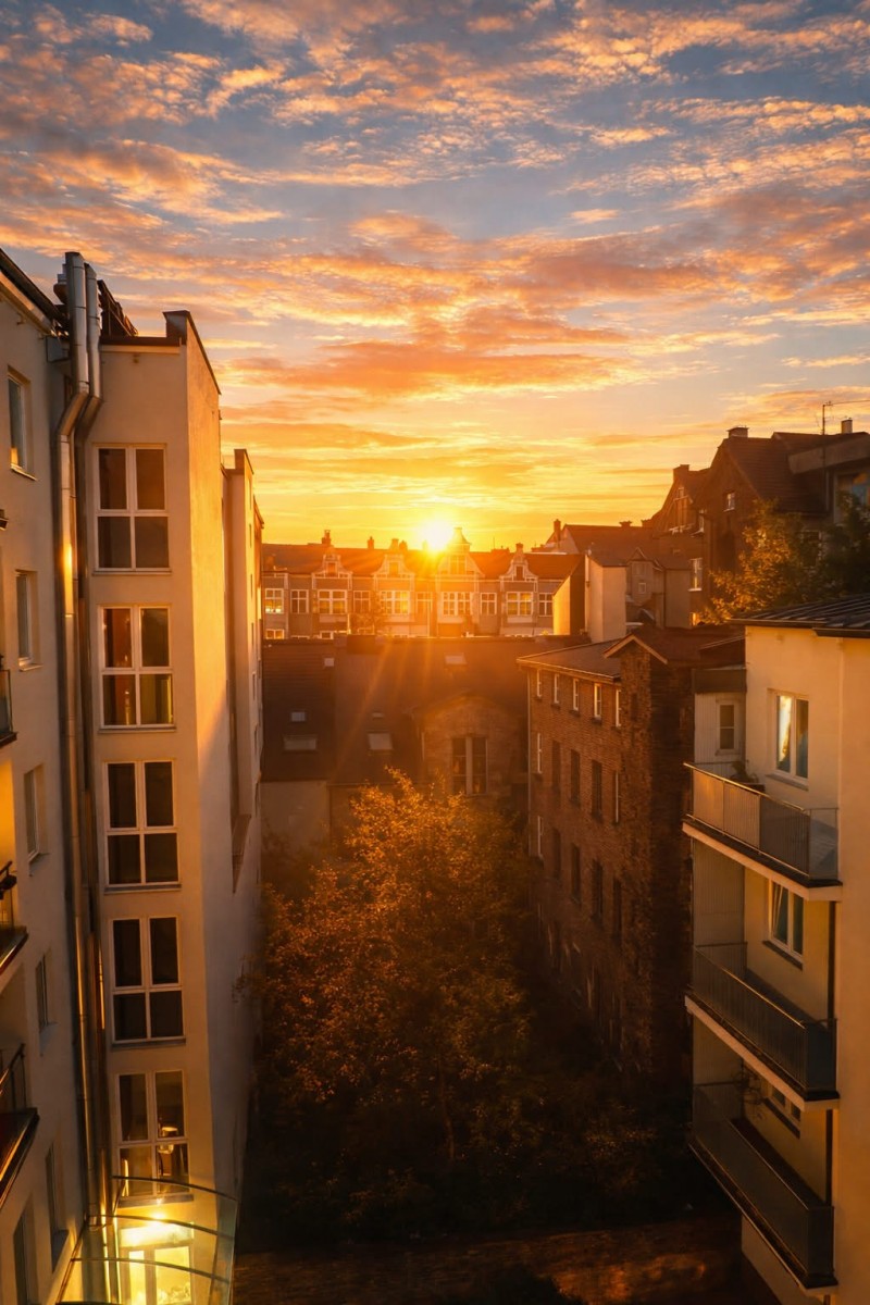 Dzięki południowej ekspozycji mieszkanie jest jasne i słoneczne przez cały dzień, a z okien rozciąga się unikatowy widok na poznańskie Stare Miasto i piękne zachody słońca.