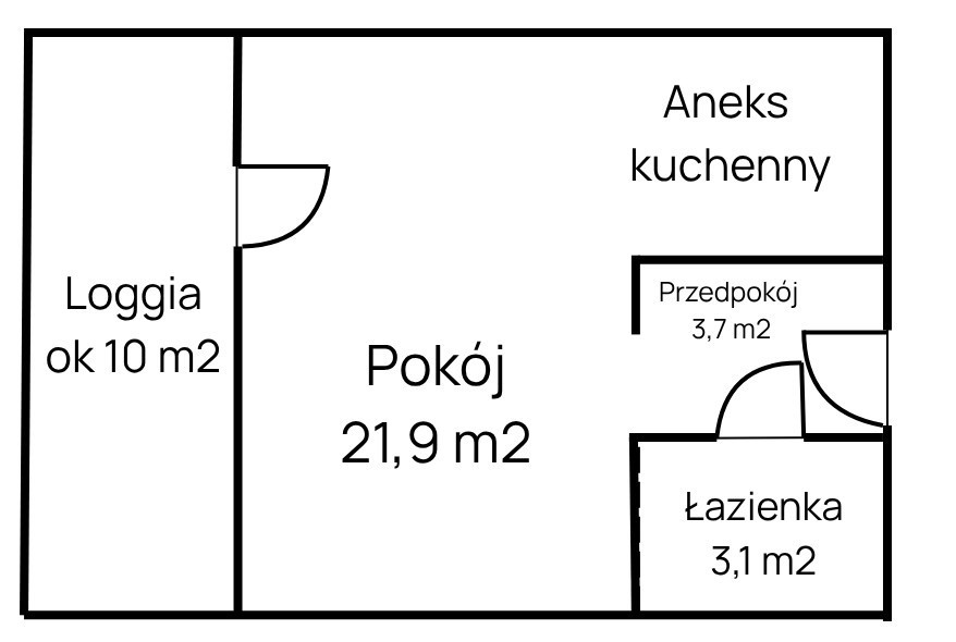 przestronny pokój z aneksem kuchennym - 21,9 m²