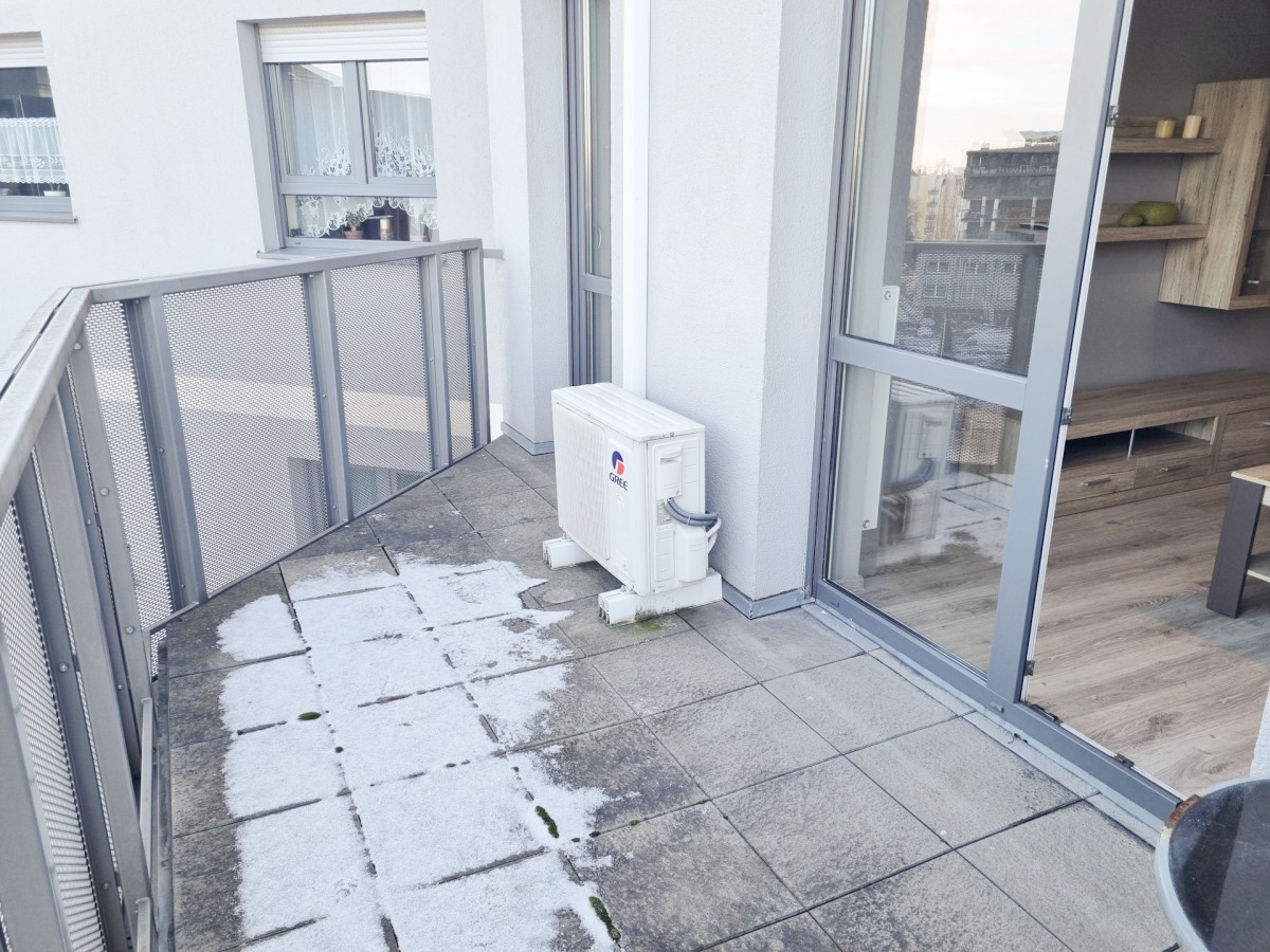 Z pokoju dziennego oraz ze sypialni jest wyjście na duży balkon - taras ok. 10 m2.