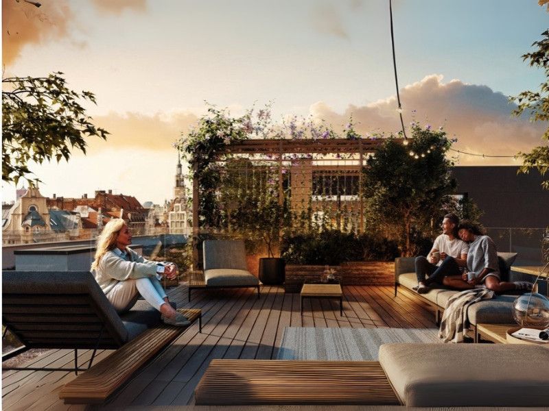 - Taras dla mieszkańców budynku - na dachu znajduje się przestronny taras widokowy - miejsce idealne do wypoczynku, spotkań towarzyskich i podziwiania panoramy miasta.