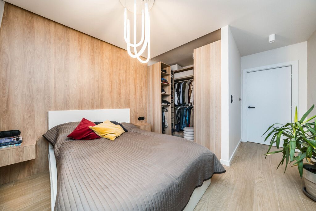 - salon z wyjściem na duży balkon i aneks kuchenny wyposażony w zabudowę na wymiar, wykonaną przez stolarza i pełne AGD - płyta indukcyjna, okap, zmywarka, piekarnik, lodówko-zamrażarka