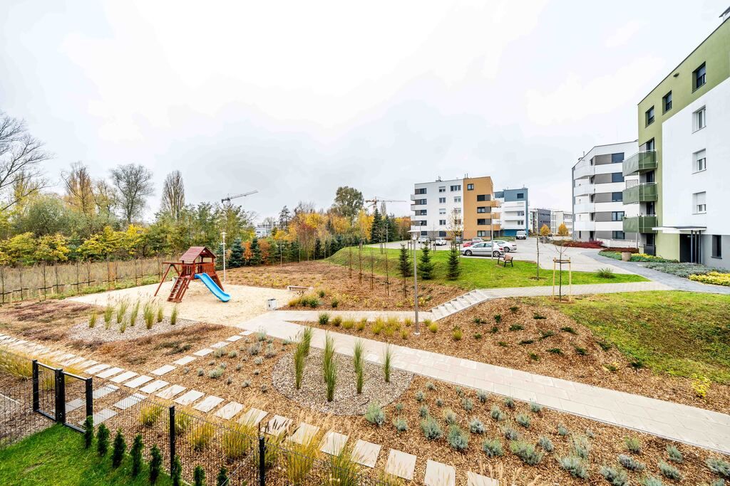 Jest też prywatny plac zabaw, ale z drugiej strony budynku - do mieszkania nie będą dochodziły odgłosy bawiących się dzieci.