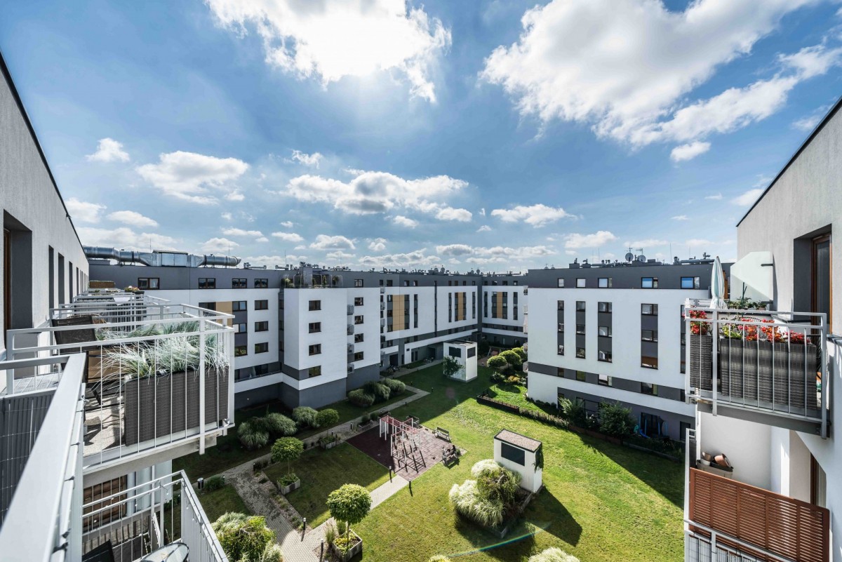 prestiżowe osiedle przy ul. Meissnera, w otoczeniu nowych bloków i domów jednorodzinnych,