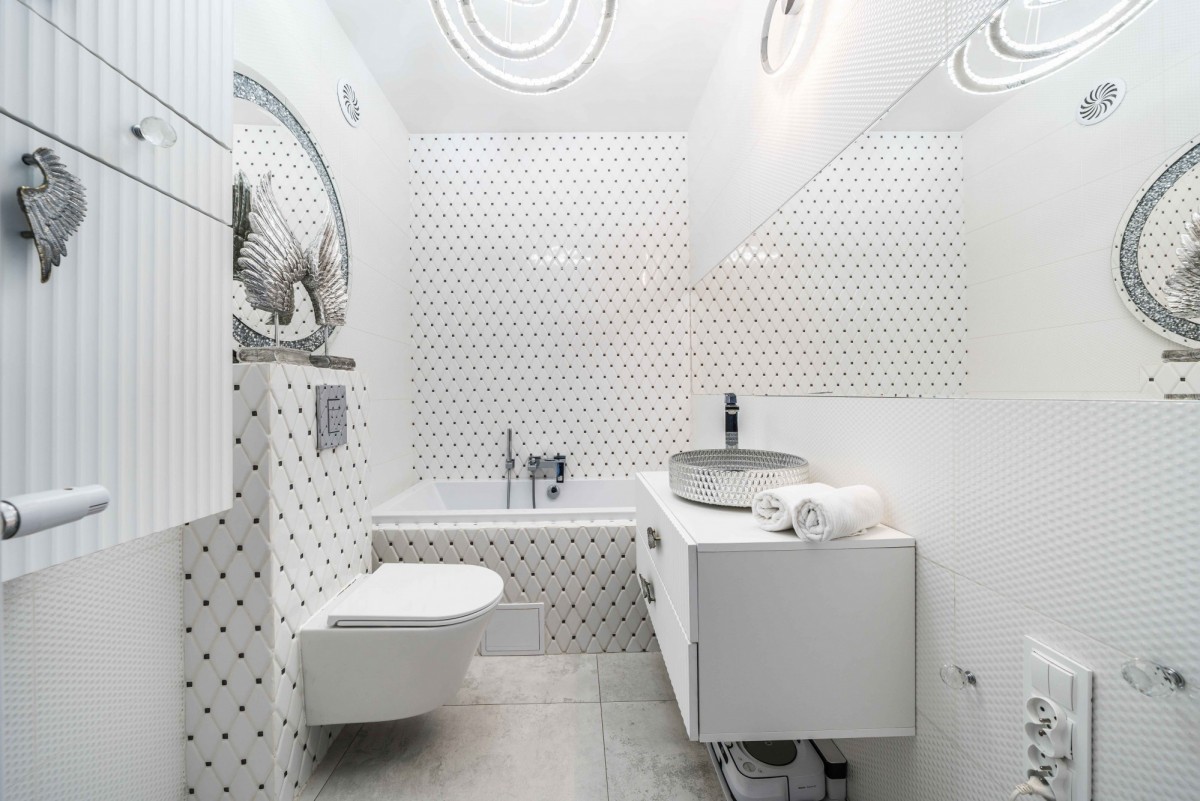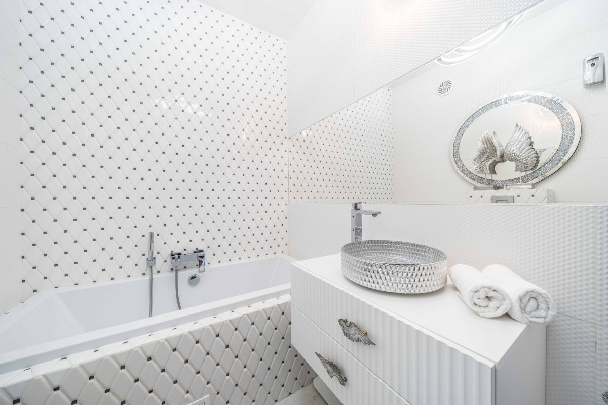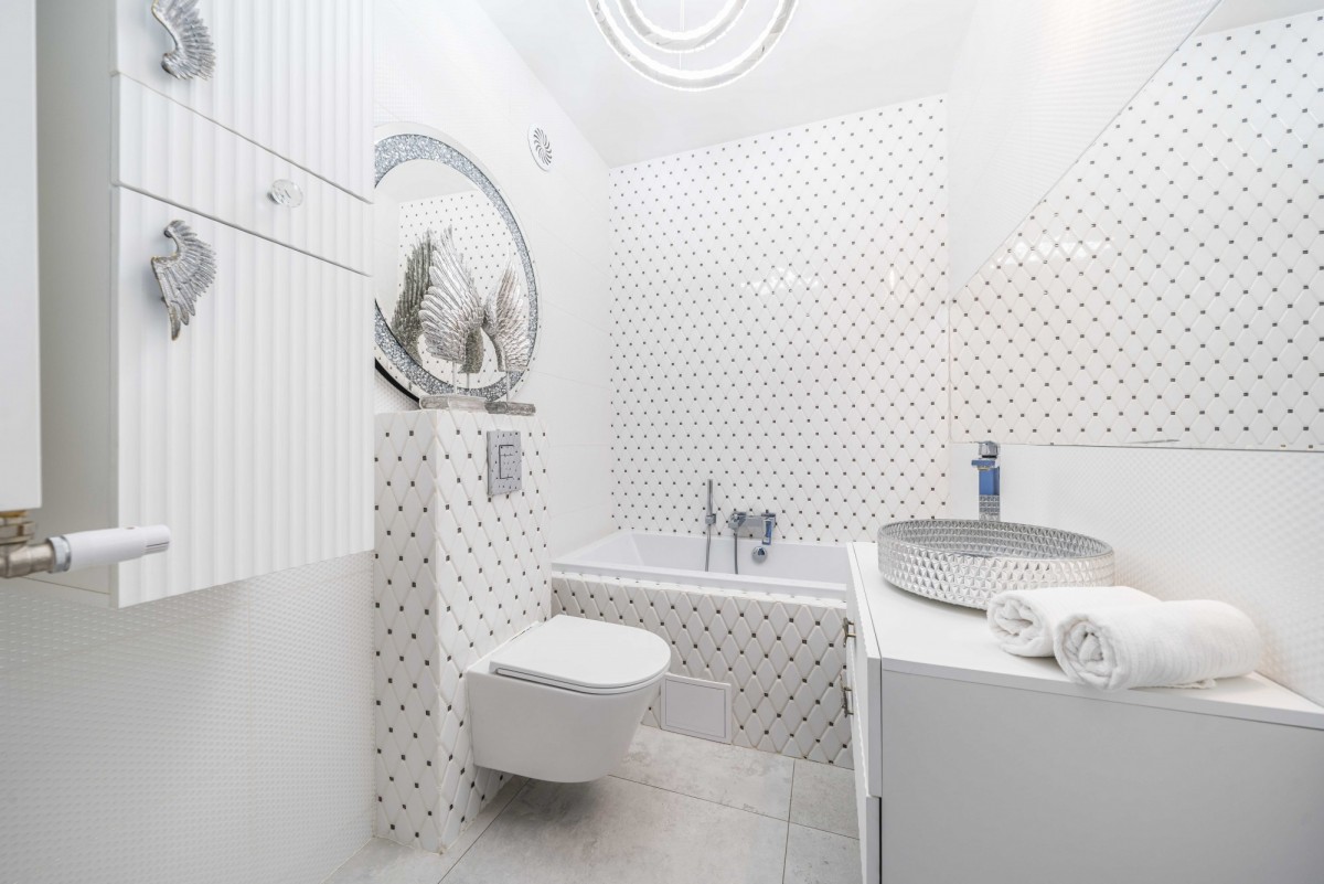 oświetlenie premium z regulacją barwy i mocy światła pilotem, lampy z kryształami, lustra optiwhite,