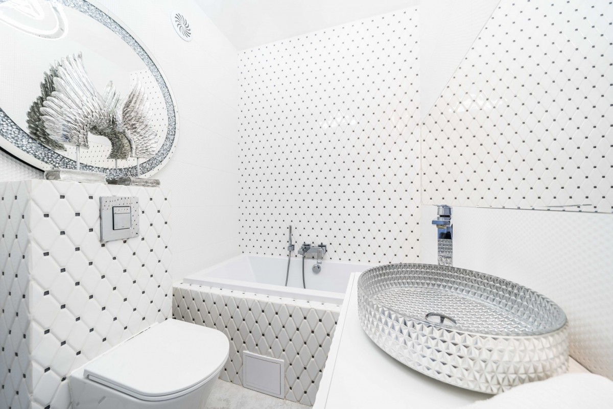 łazienka wykończona płytkami Tubądzin, armatura Grohe,