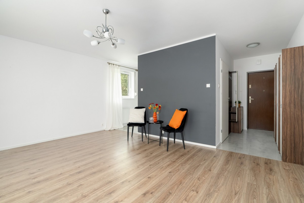 Salon po odświeżeniu, ustawny i korzystnie doświetlony.